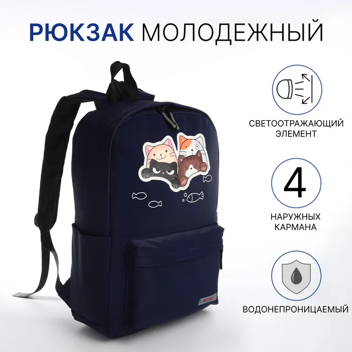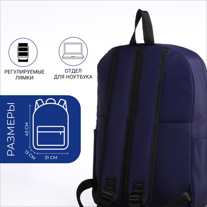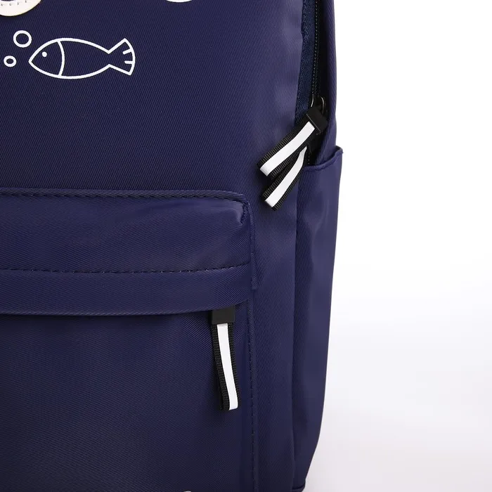 Рюкзак школьный на молнии, с карманами, с принтом, размер 31×13×43 см, синий — Характеристики