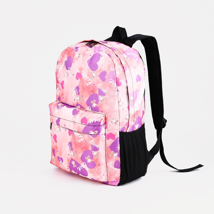Рюкзак школьный на молнии, с карманами, с принтом, розовый/сиреневый