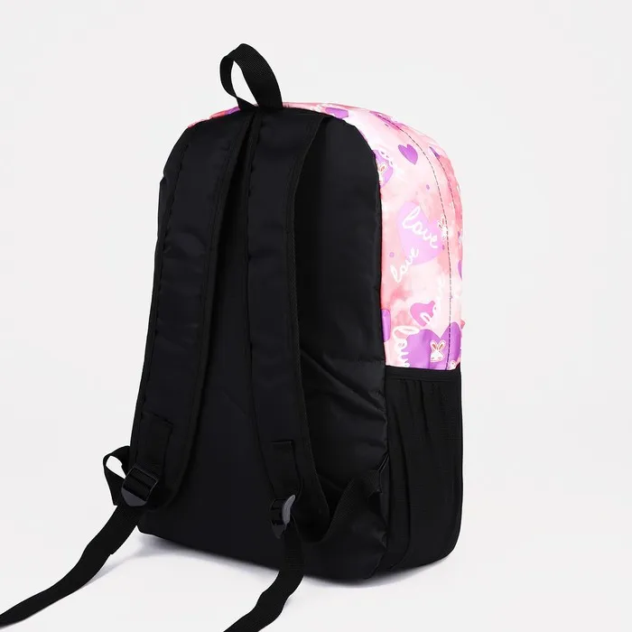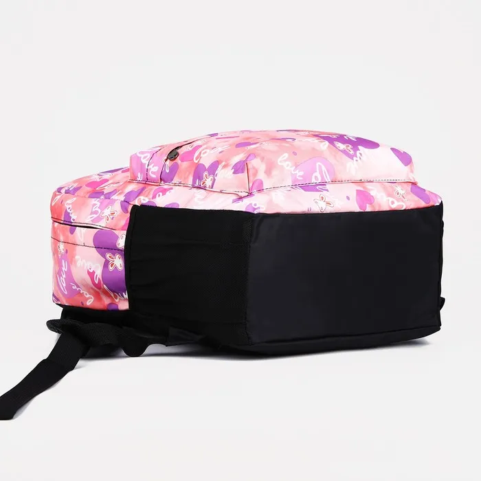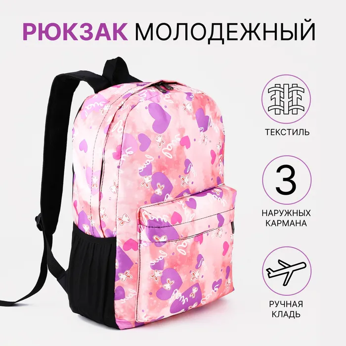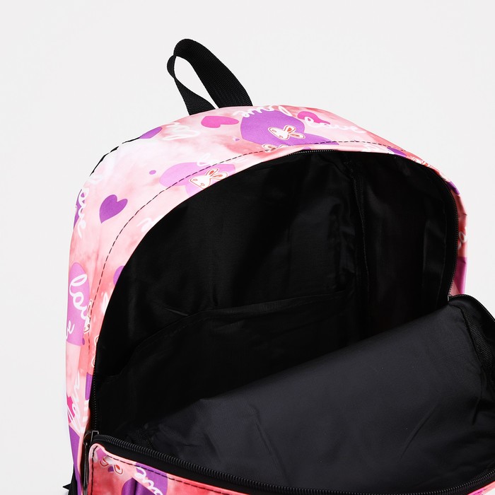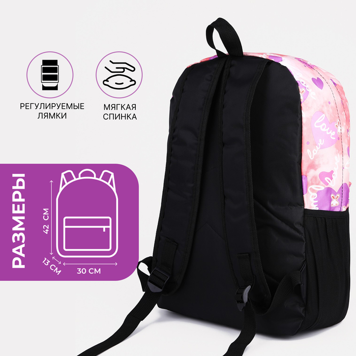 Рюкзак школьный на молнии, с карманами, с принтом, розовый/сиреневый — Характеристики
