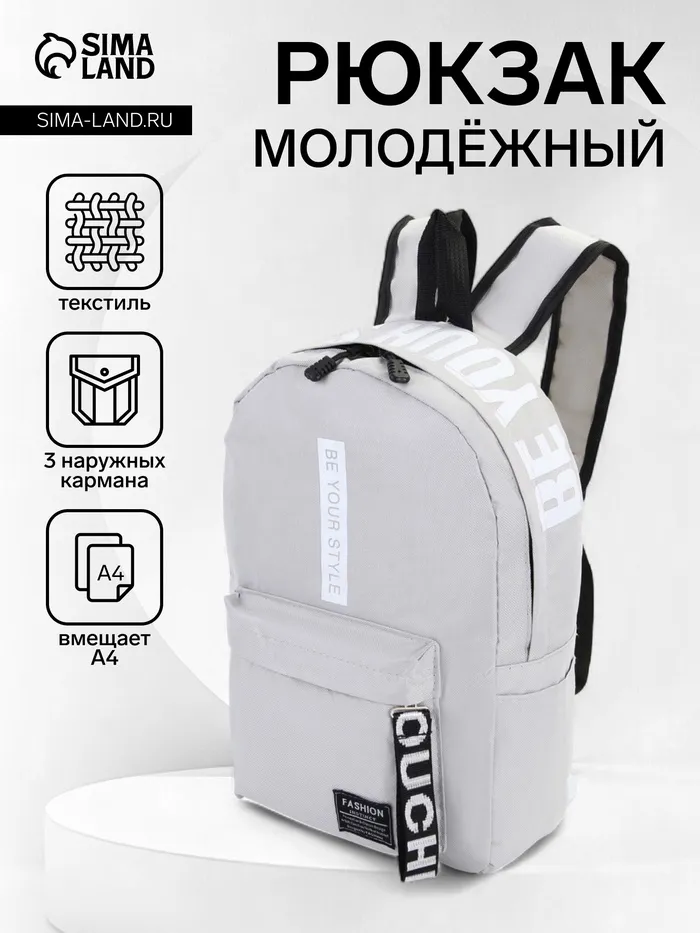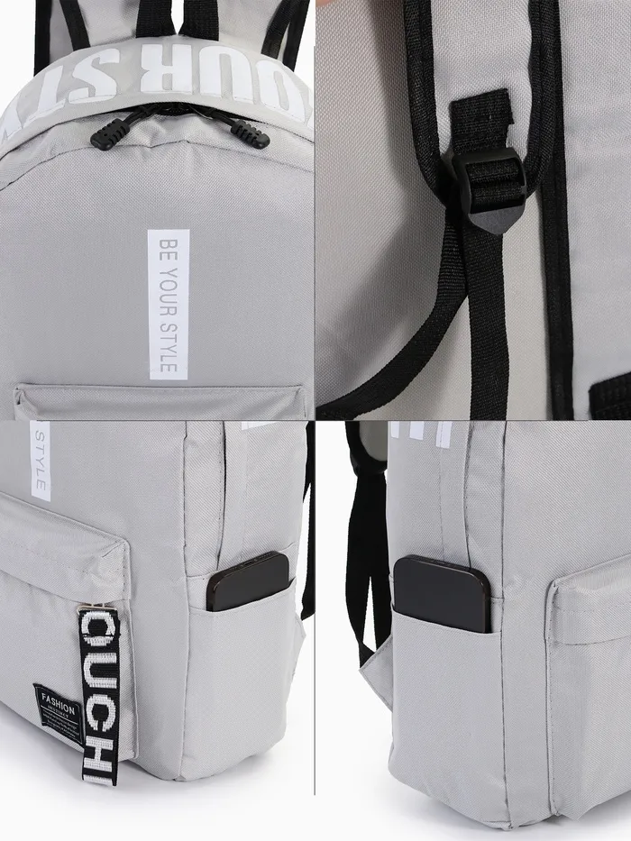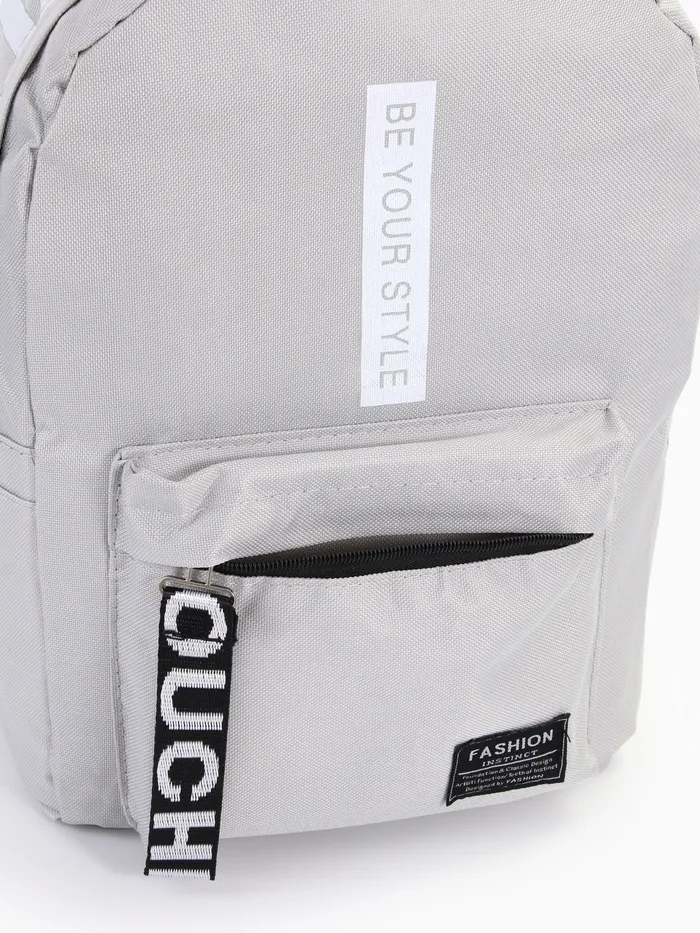 Рюкзак школьный на молнии, с карманами, с принтом, серый — Характеристики
