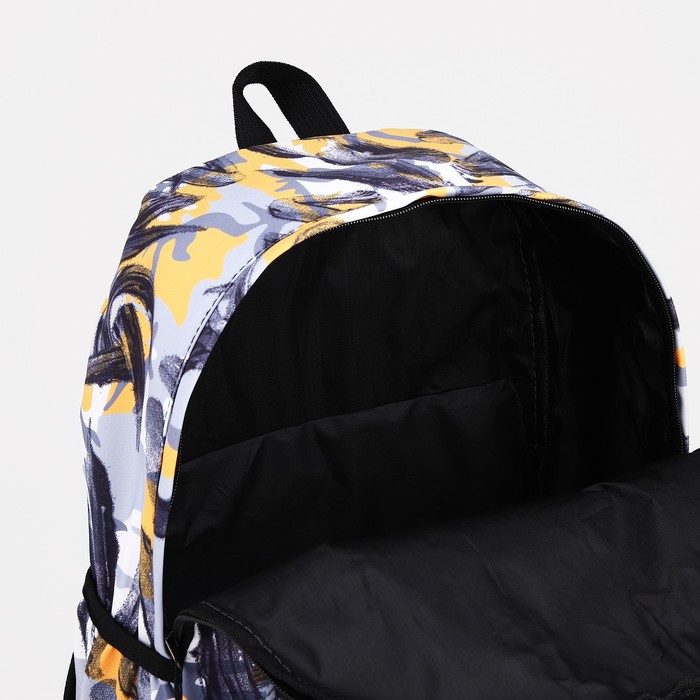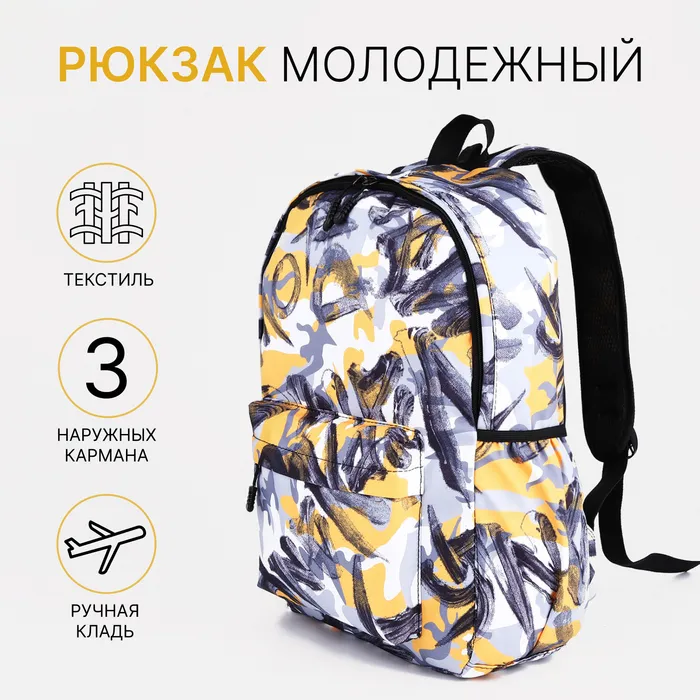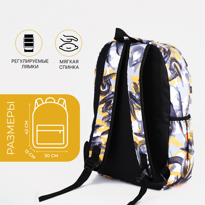 Рюкзак школьный на молнии, с карманами, с принтом, серый/жёлтый — Характеристики
