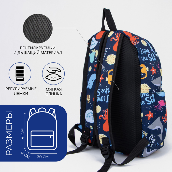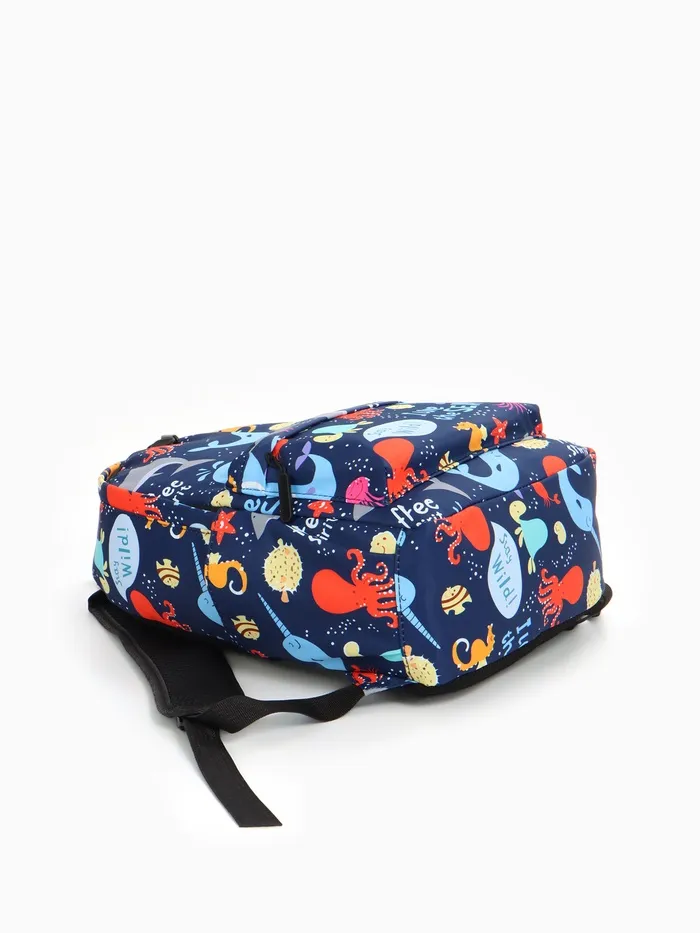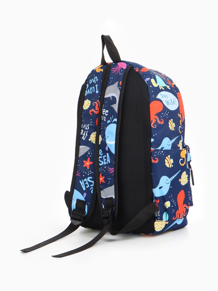 Рюкзак школьный на молнии, с карманами, с принтом, синий — Характеристики