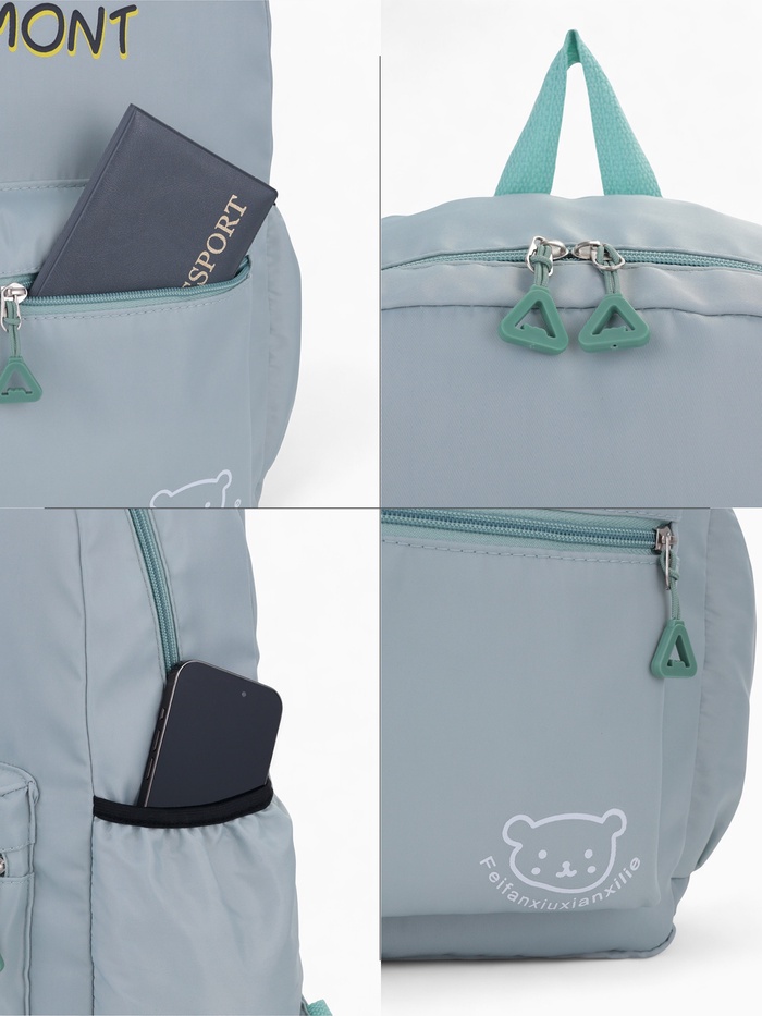Рюкзак школьный на молнии, с карманами, с принтом, зелёный — Характеристики