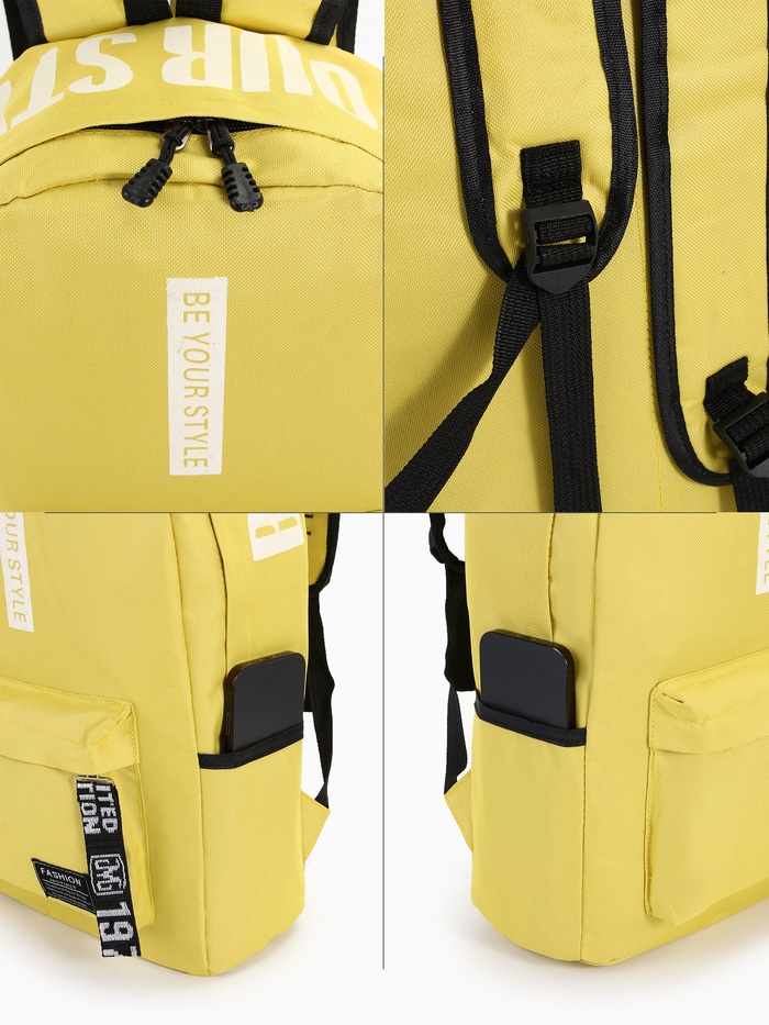 Рюкзак школьный на молнии, с карманами, с принтом, жёлтый — Характеристики
