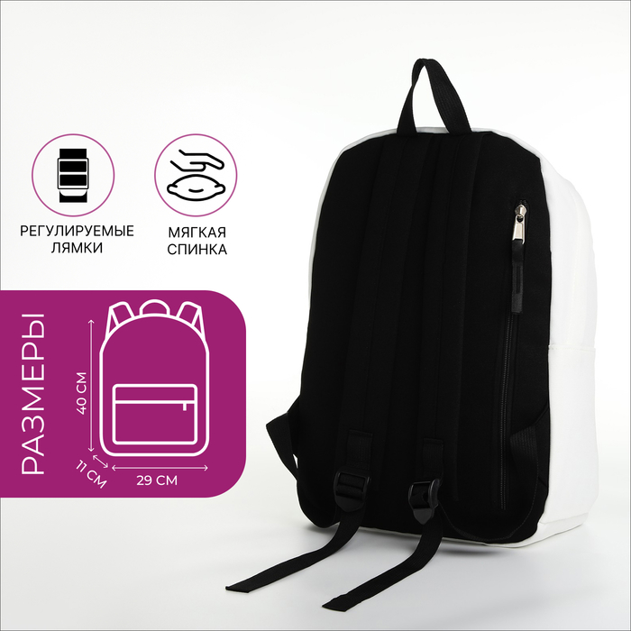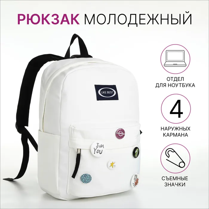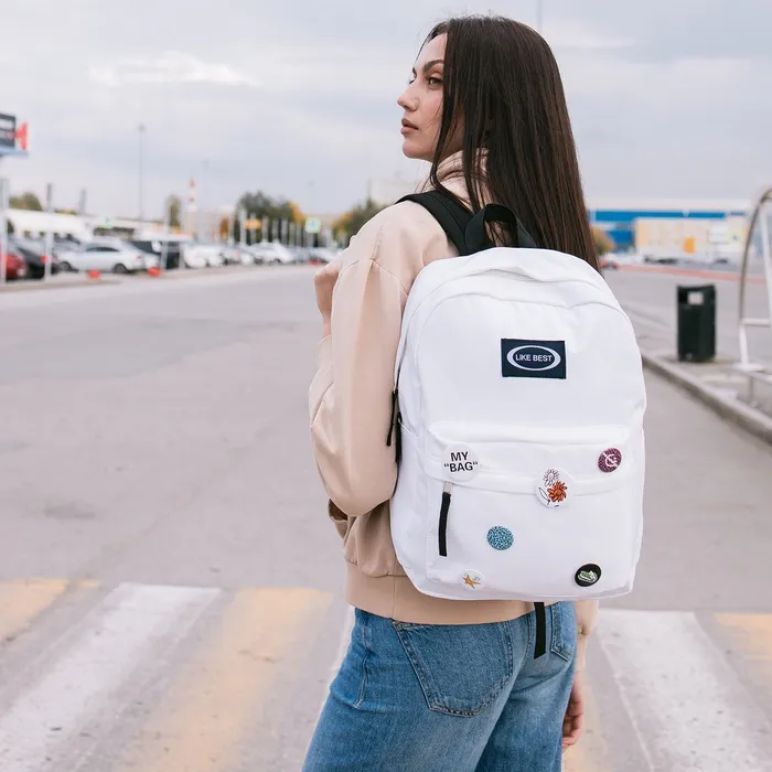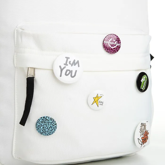 Рюкзак школьный на молнии, с карманами, с разноцветными значками, белый — Характеристики