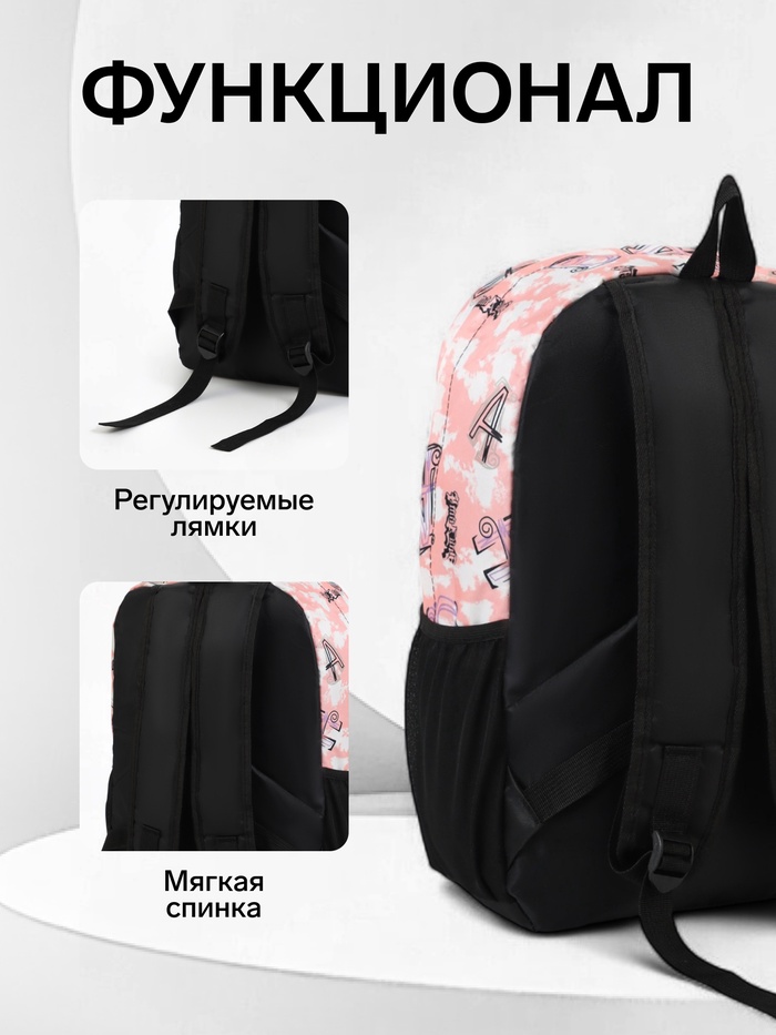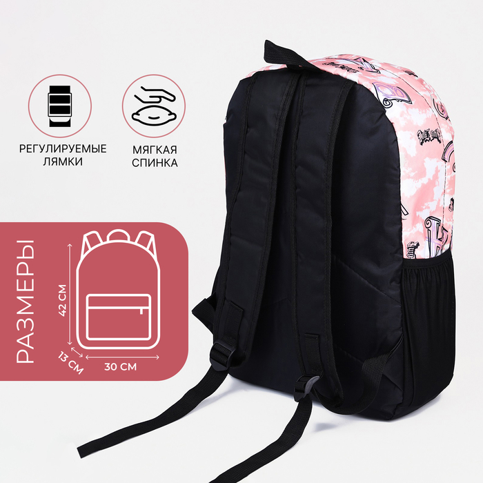 Рюкзак школьный на молнии, с карманами, с рисунками, размер 30×13×42 см, серый/красный — Характеристики