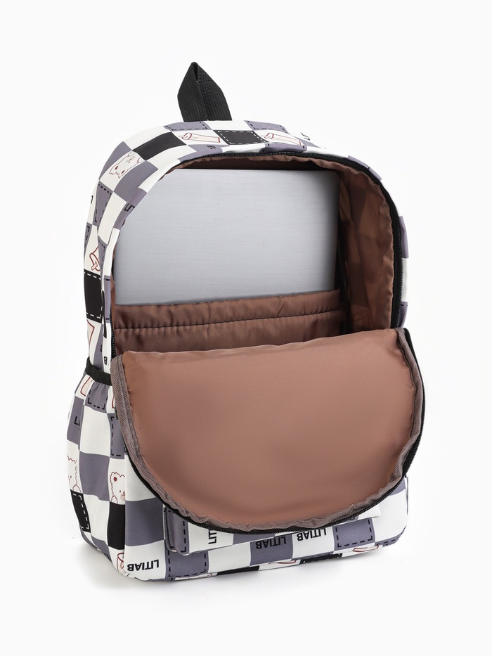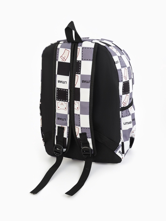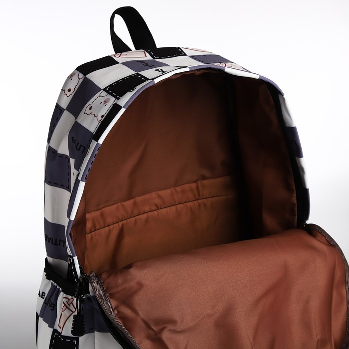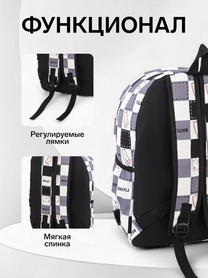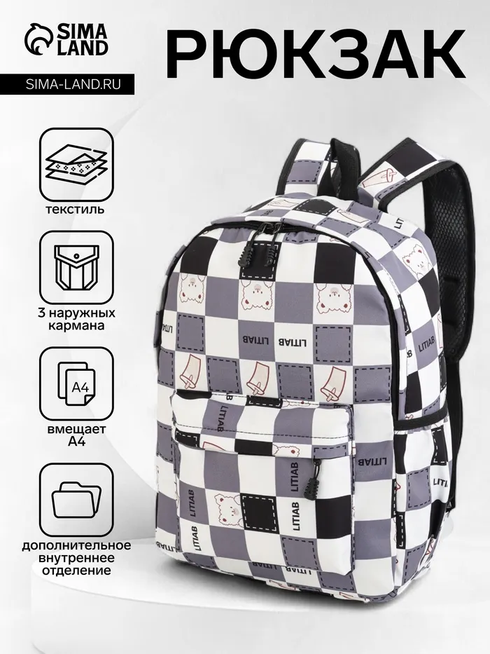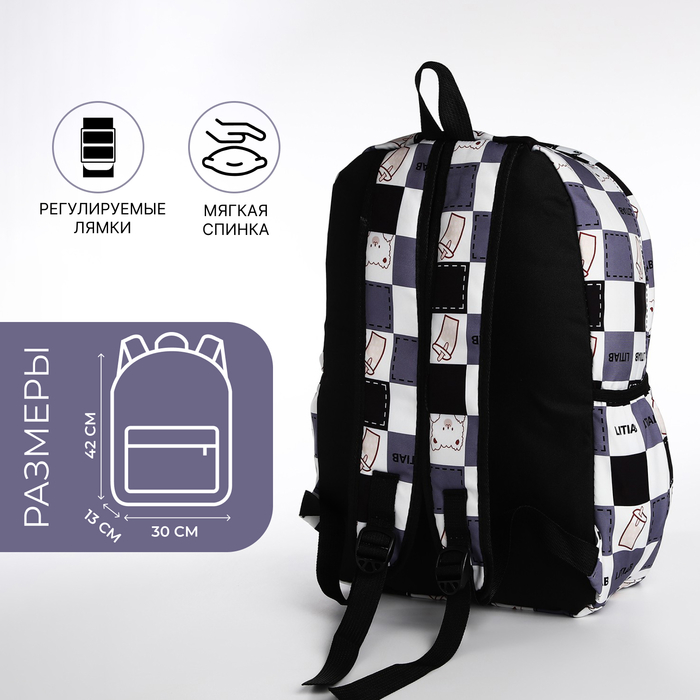 Рюкзак школьный на молнии, с карманами, с рисунком, размер 30×13×42 см, с принтом, бежевый/чёрный — Характеристики