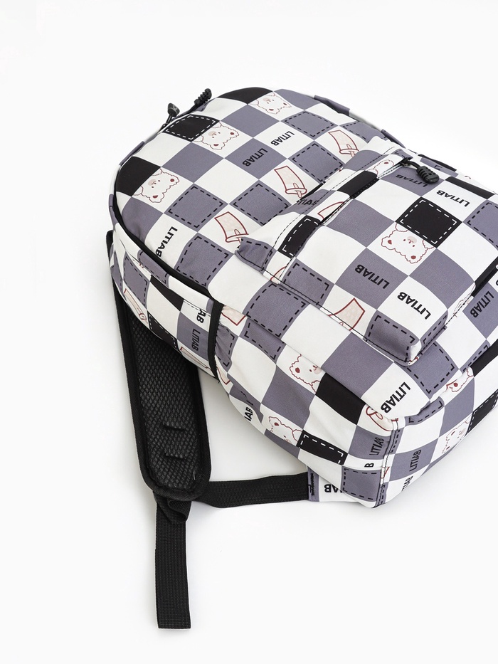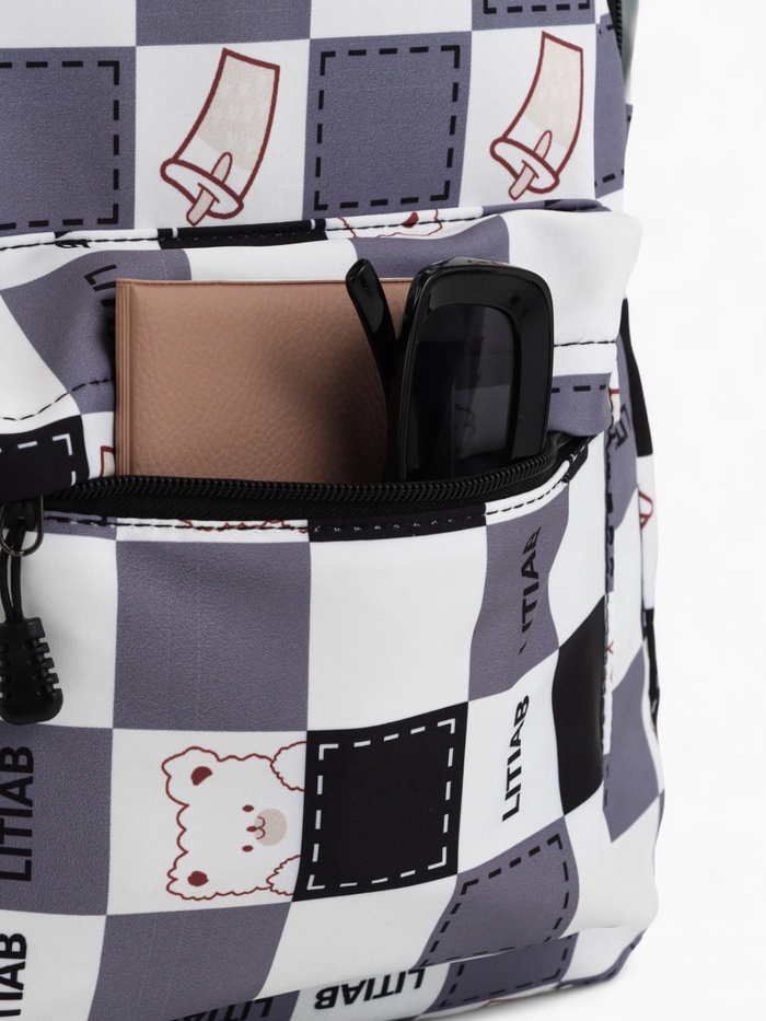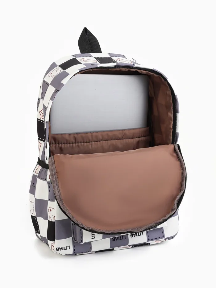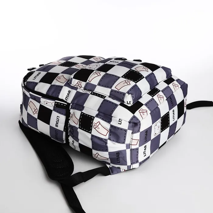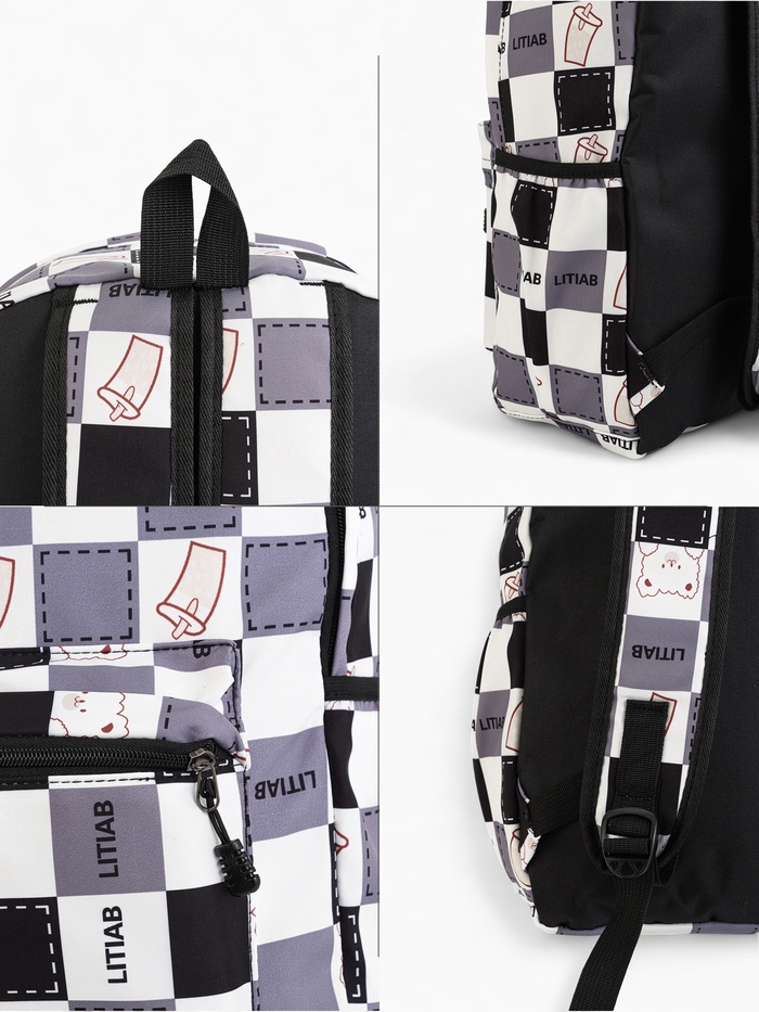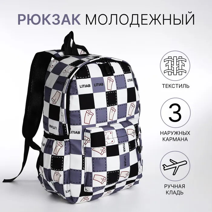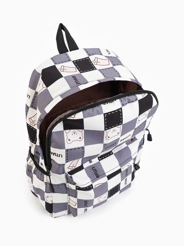 Рюкзак школьный на молнии, с карманами, с рисунком, размер 30×13×42 см, с принтом, бежевый/чёрный — Характеристики