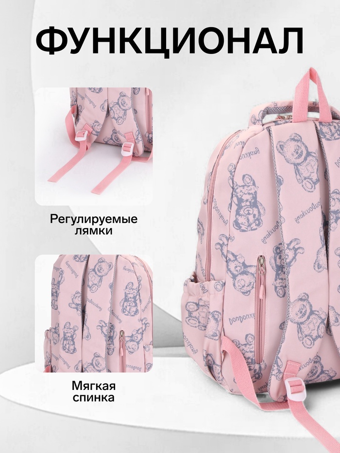 Рюкзак школьный на молнии, с карманами, с рисунком, размер 30×14×42.5 см, розовый — Характеристики