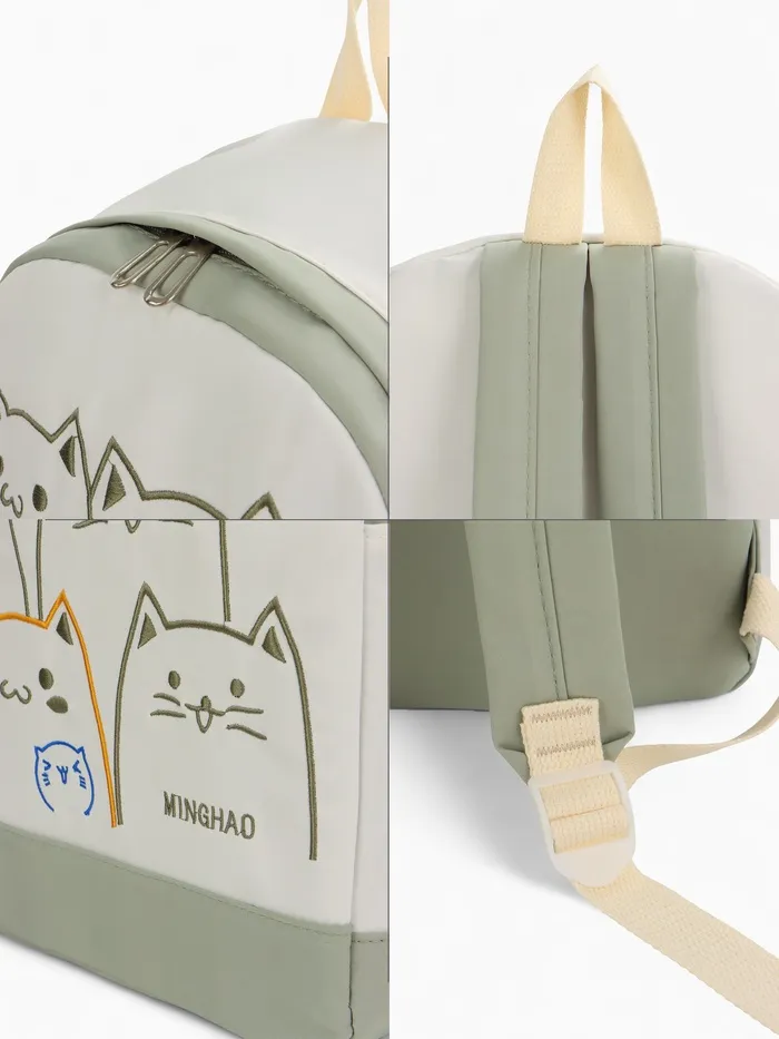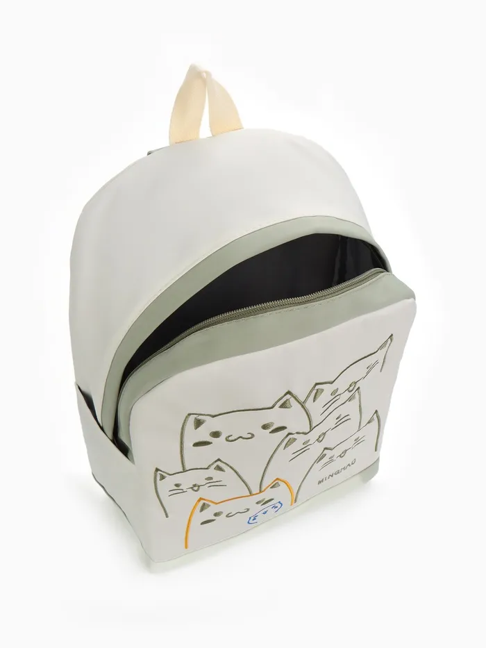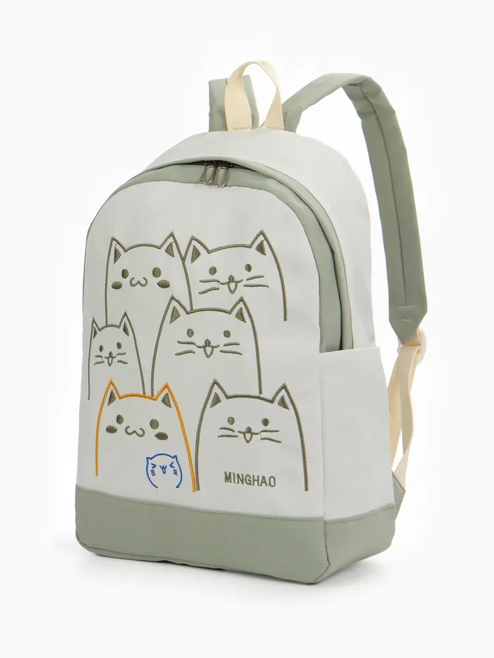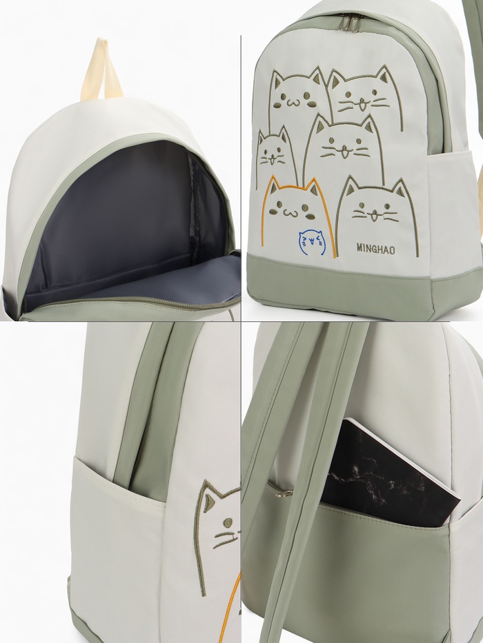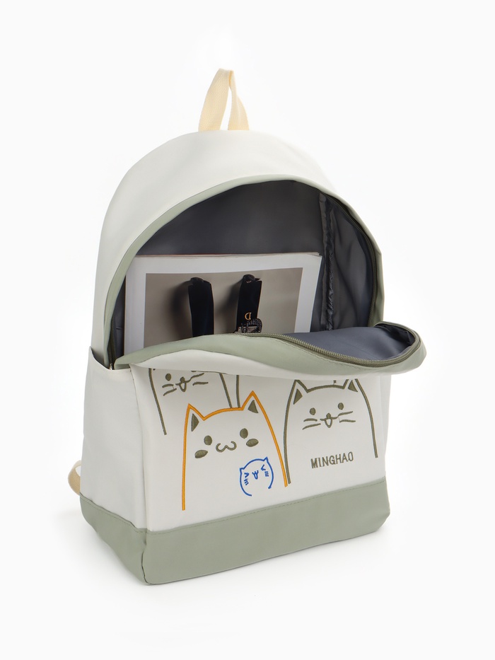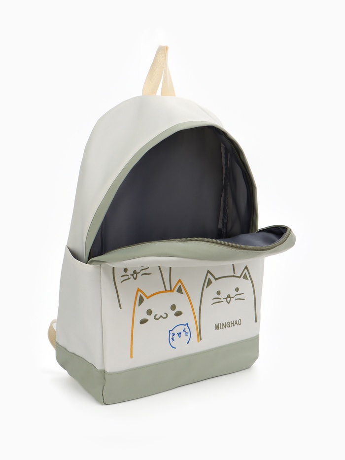 Рюкзак школьный на молнии, с карманами, с рисунком, размер 30×14×43 см, белый/зелёный — Характеристики