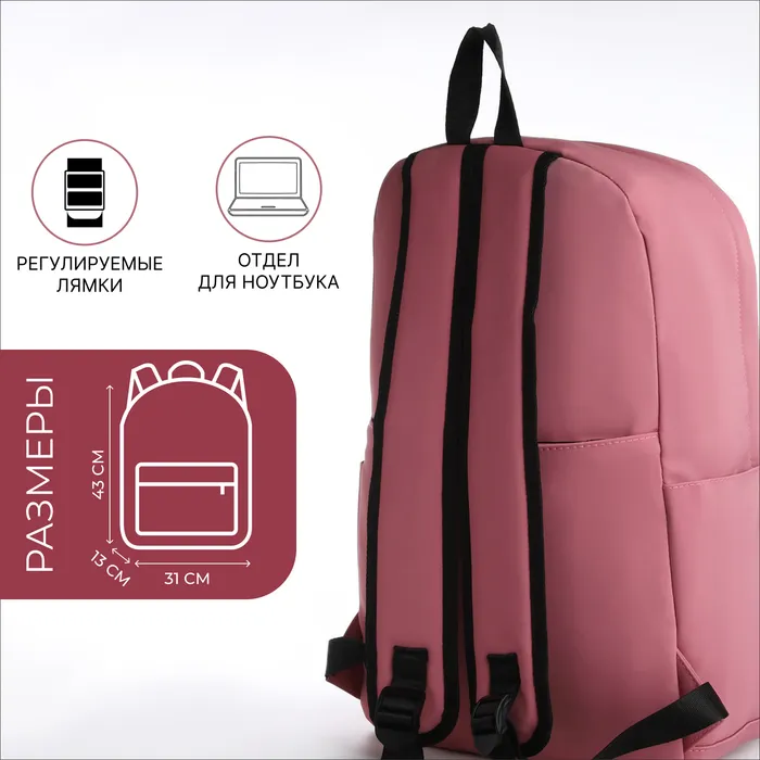Рюкзак школьный на молнии, с карманами, с рисунком, размер 31×13×43 см, розовый — Характеристики