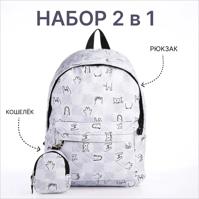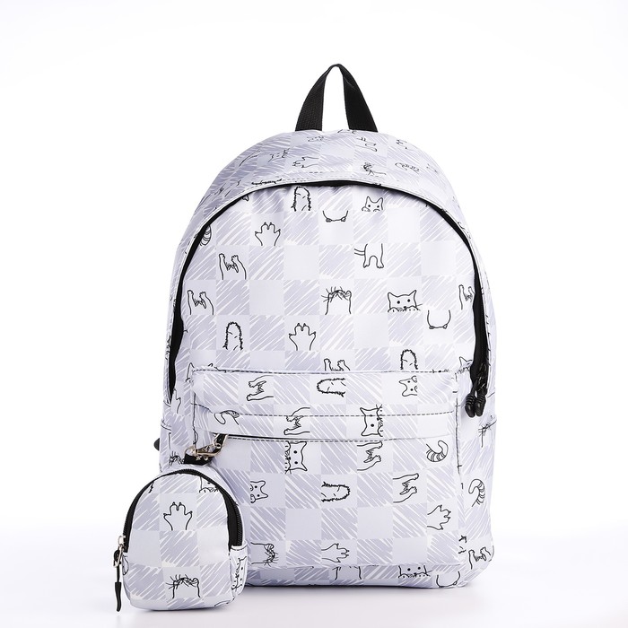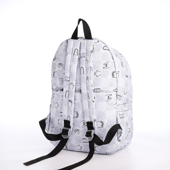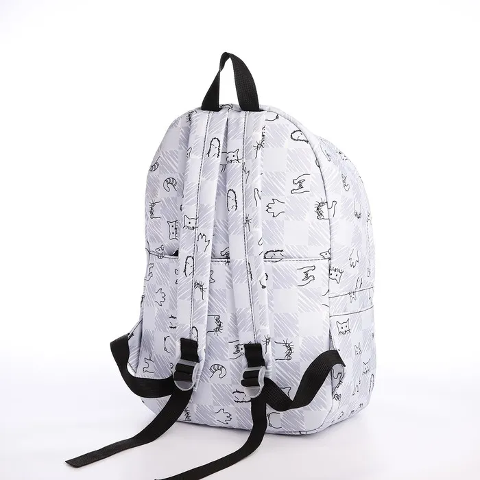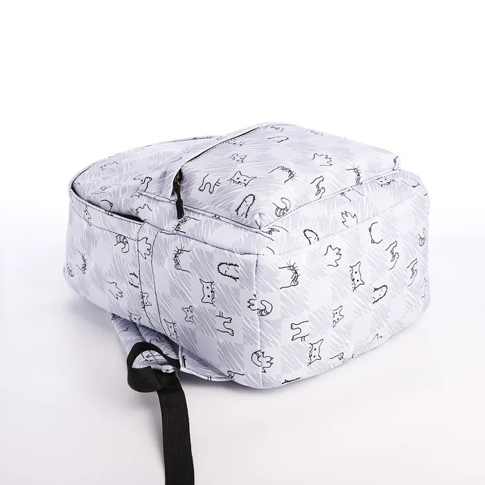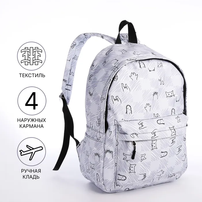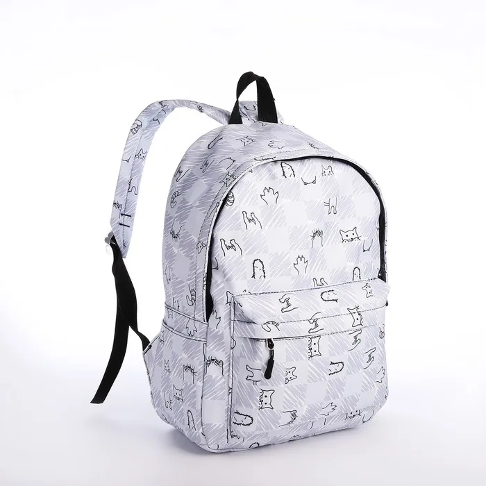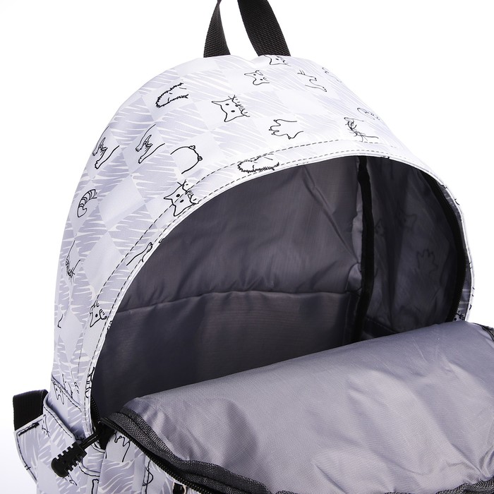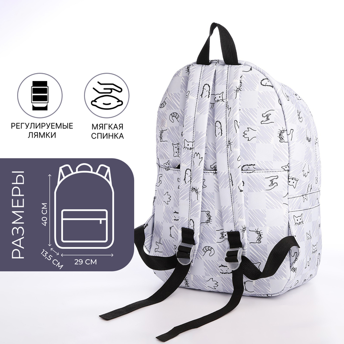 Рюкзак школьный на молнии, с карманами, с рисунком, серый — Характеристики