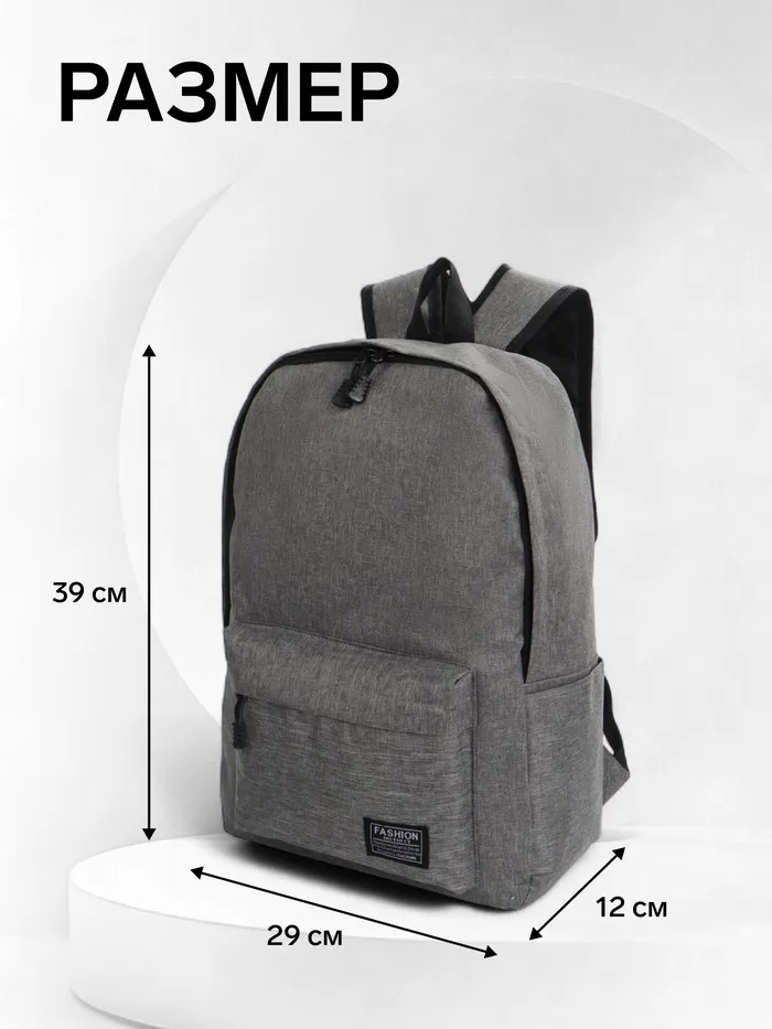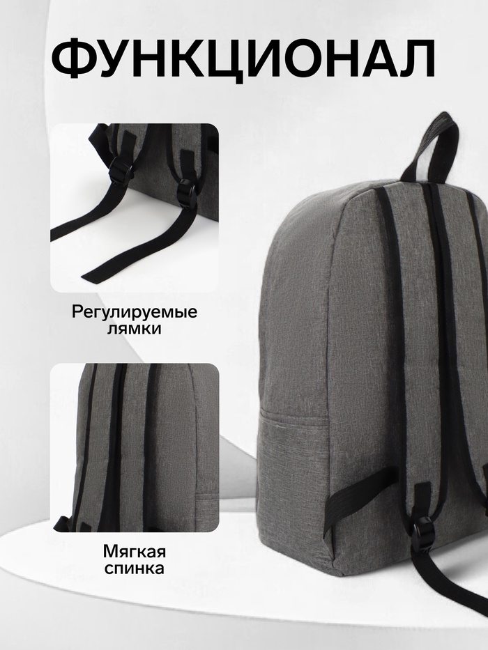 Рюкзак школьный на молнии, с карманами, серый — Характеристики