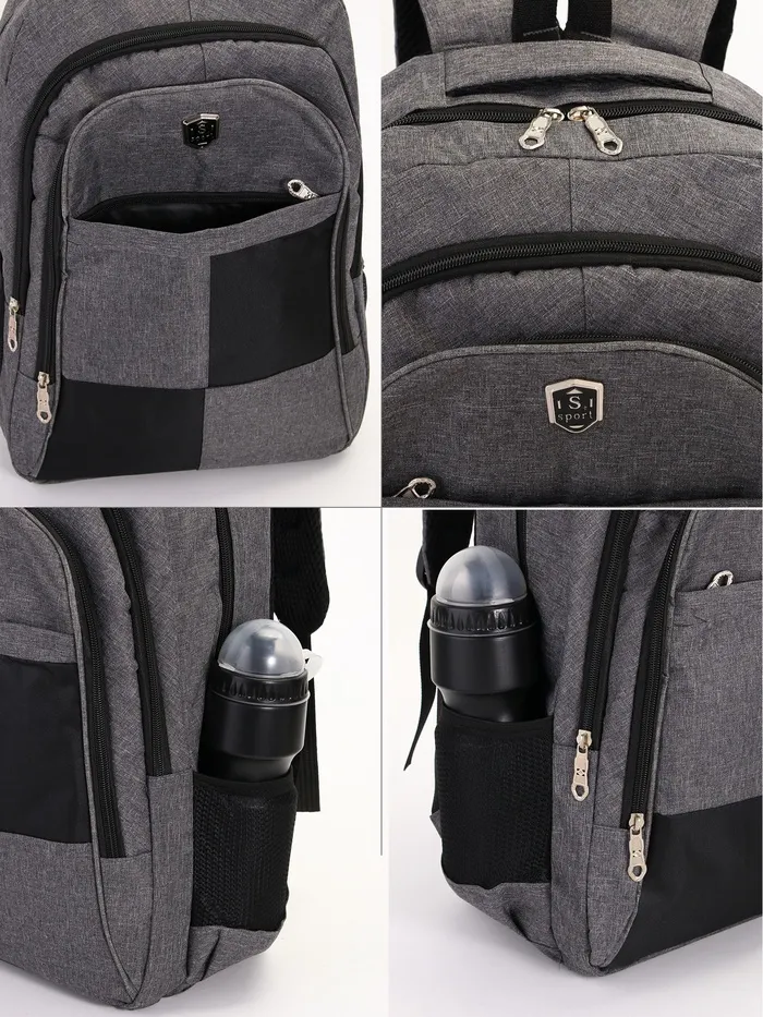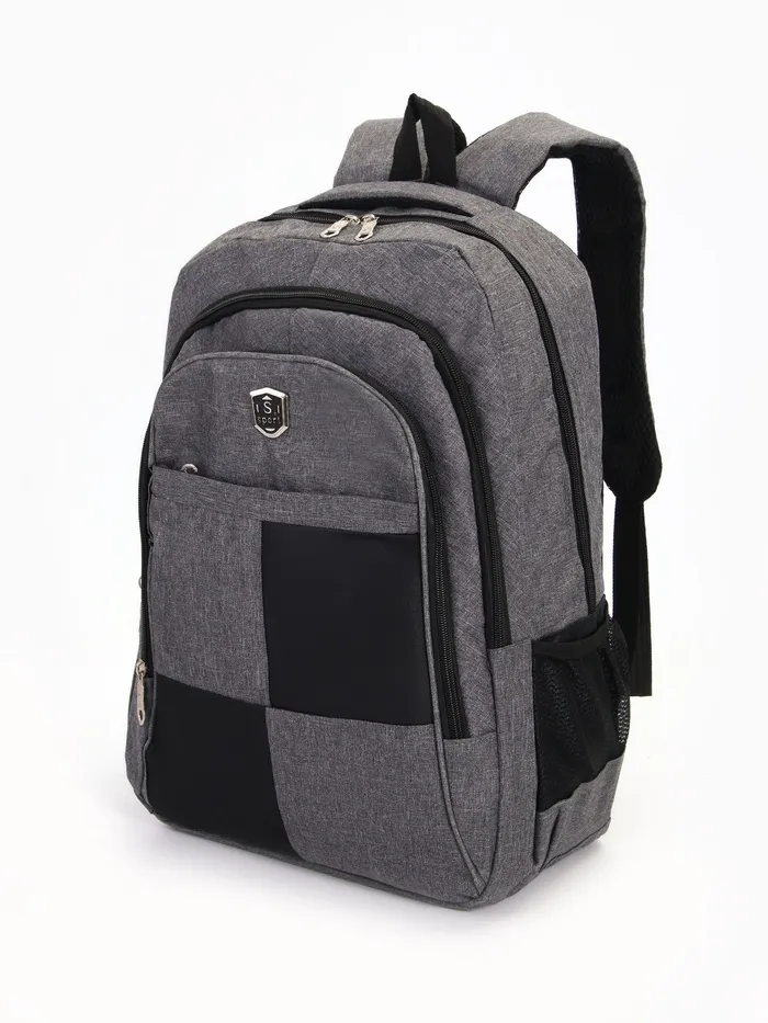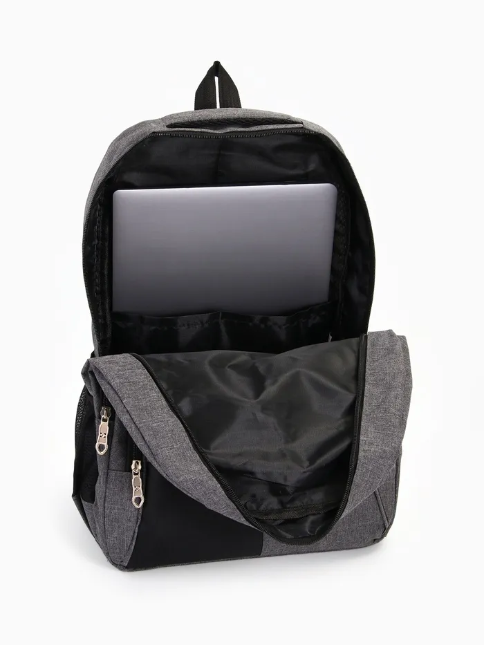 Рюкзак школьный на молнии, с карманами, серый/чёрный — Характеристики