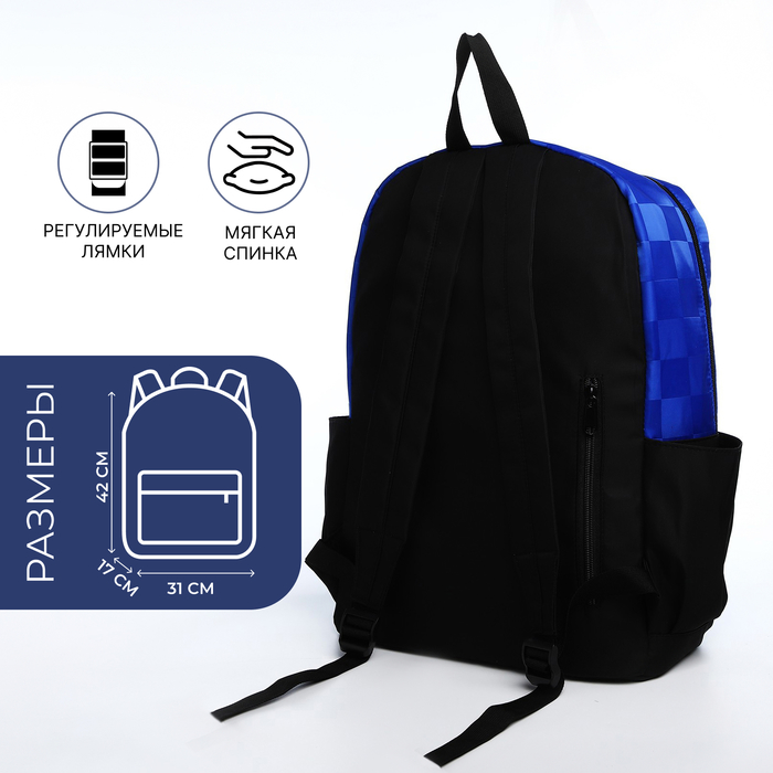 Рюкзак школьный на молнии, с карманами, синий/чёрный — Характеристики