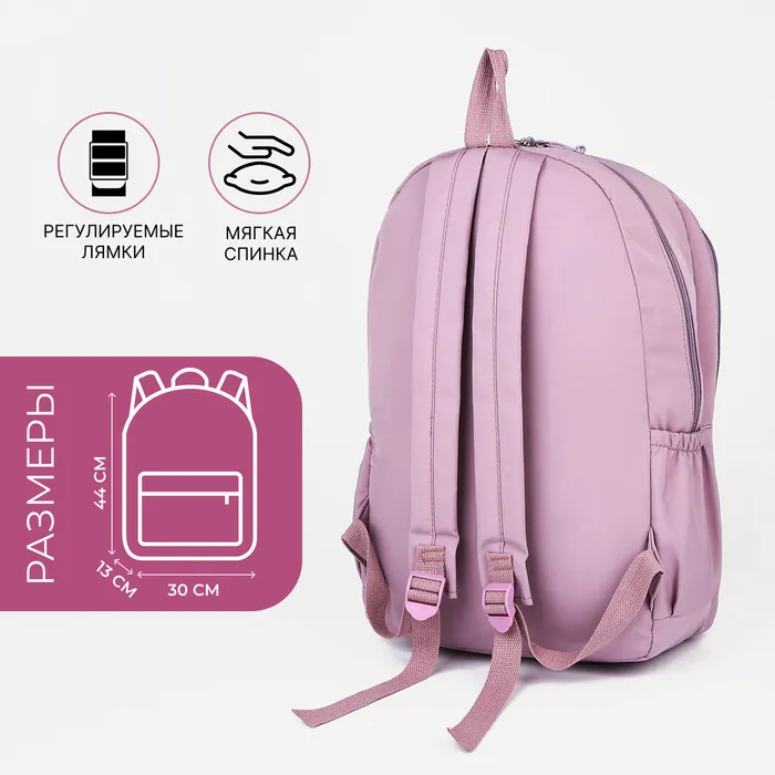 Рюкзак школьный на молнии, с карманами, сиреневый — Характеристики