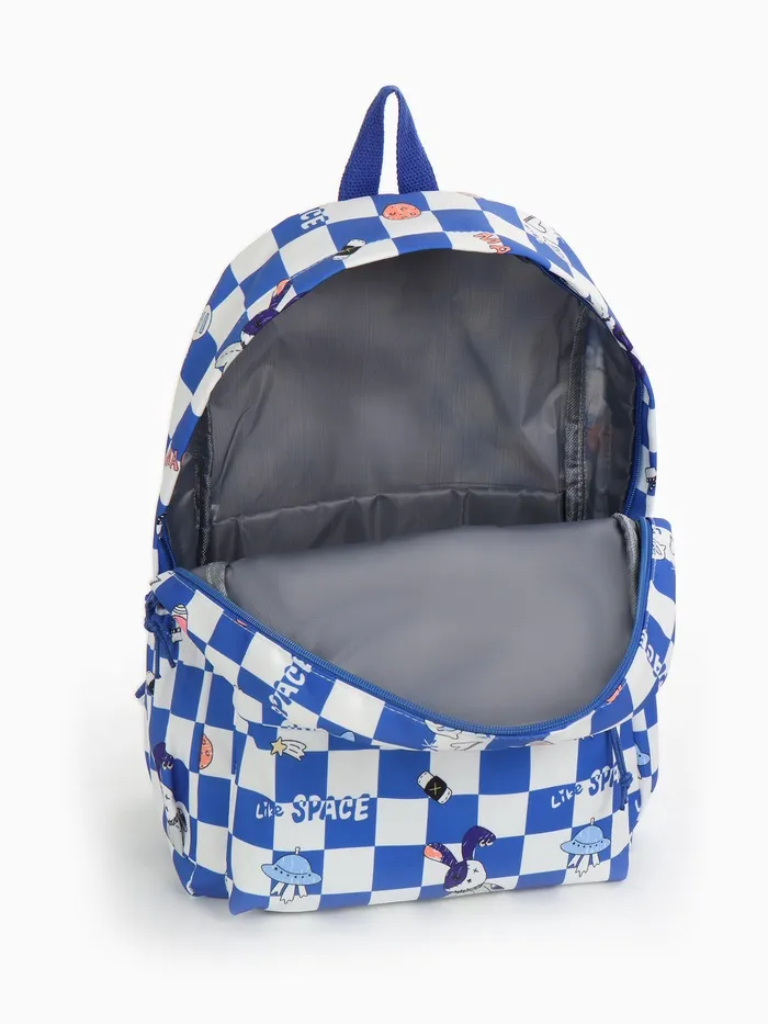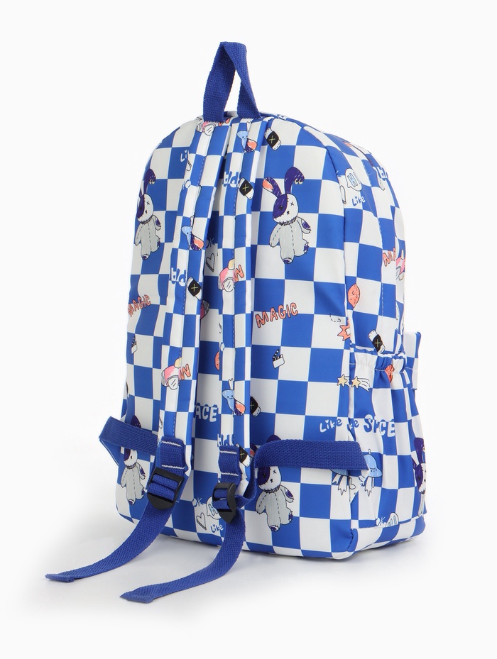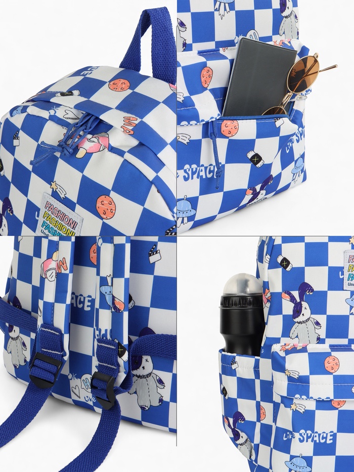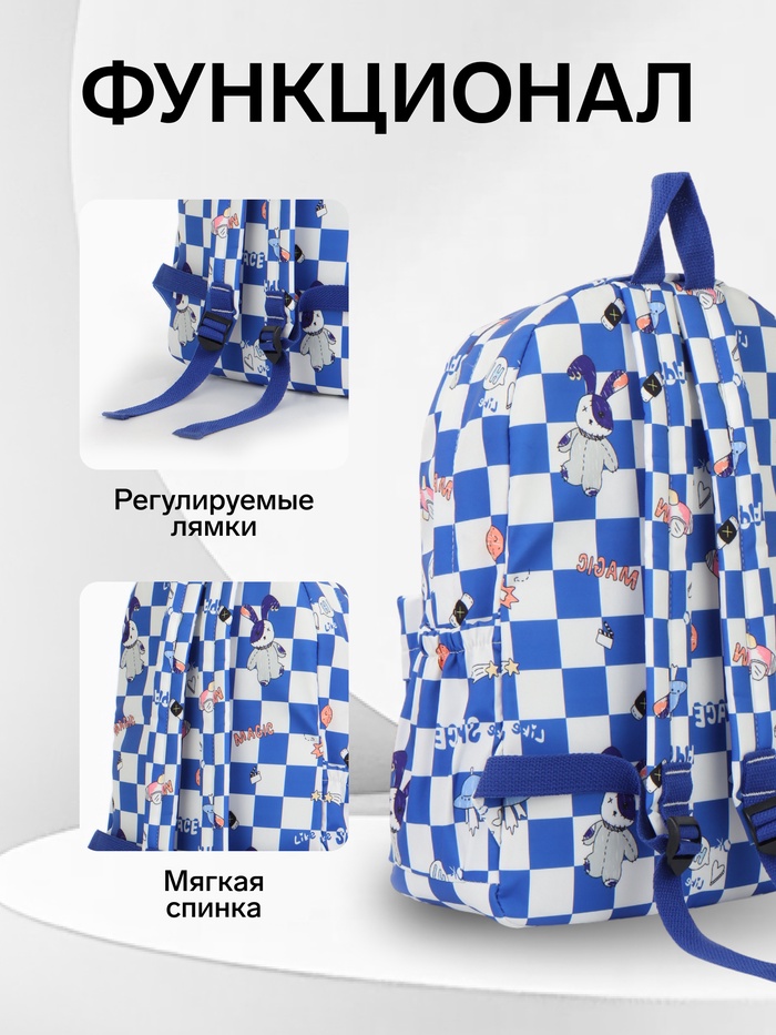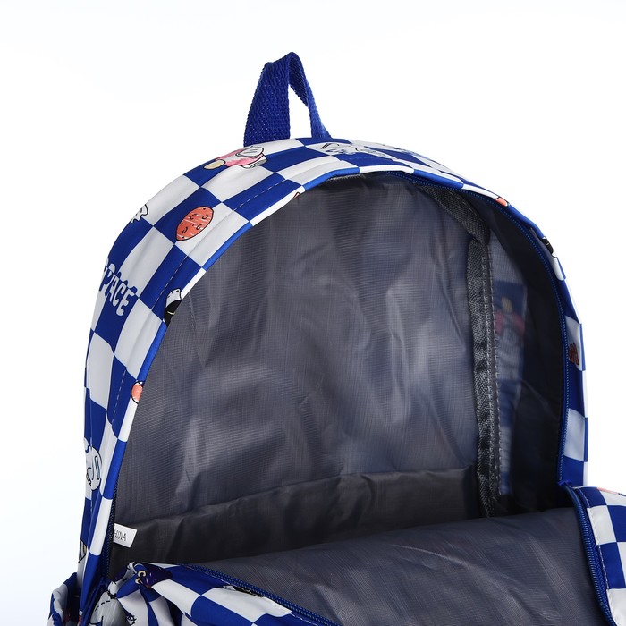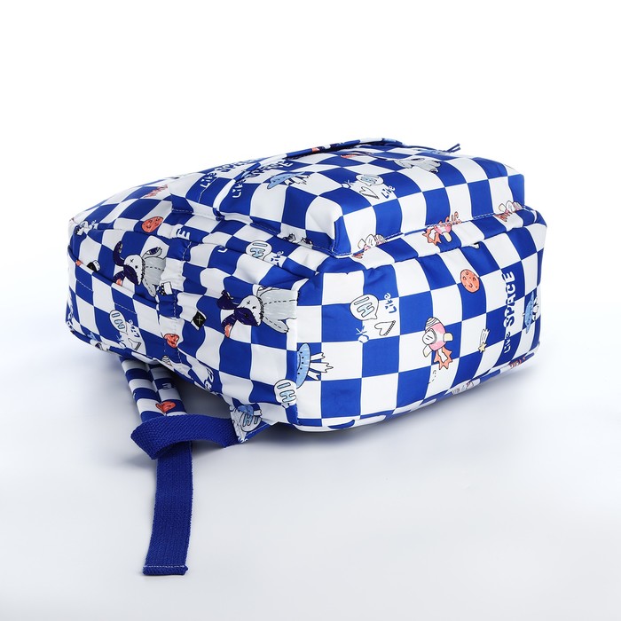 Рюкзак школьный на молнии, с карманами, в клетку, размер 28×11.5×40 см, синий — Характеристики