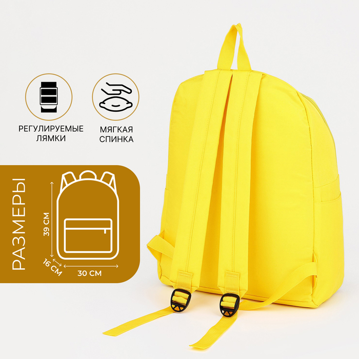Рюкзак школьный на молнии, с карманами, жёлтый — Характеристики