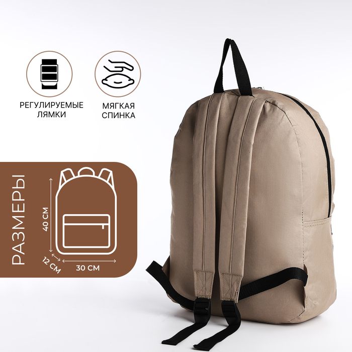 Рюкзак школьный на молнии, с карманом, бежевый — Характеристики