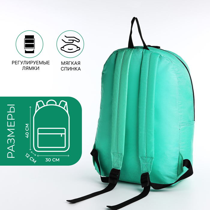 Рюкзак школьный на молнии, с карманом, бирюзовый — Характеристики