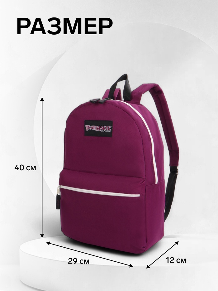 Рюкзак школьный на молнии, с карманом, бордовый — Характеристики