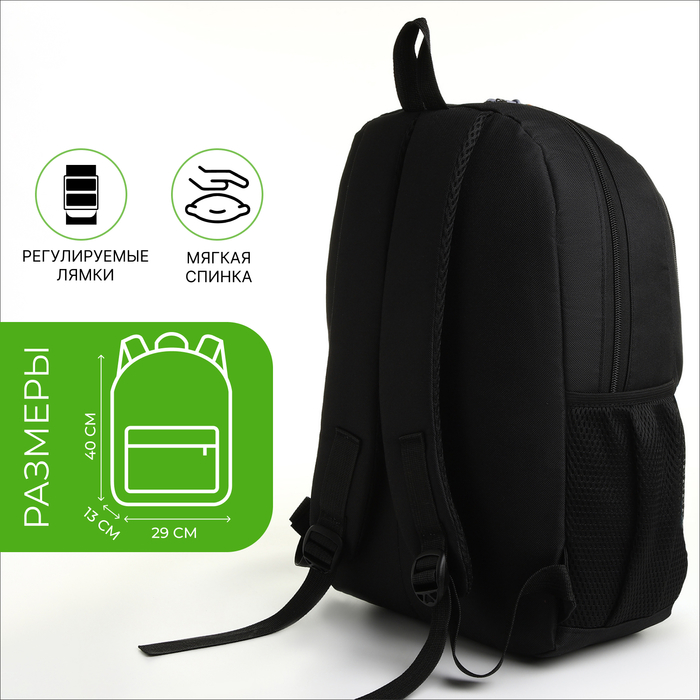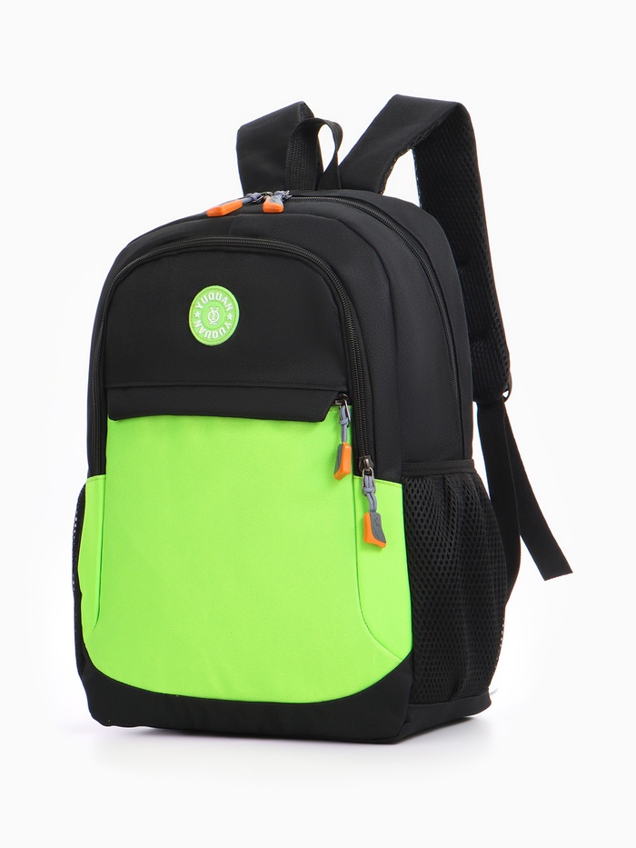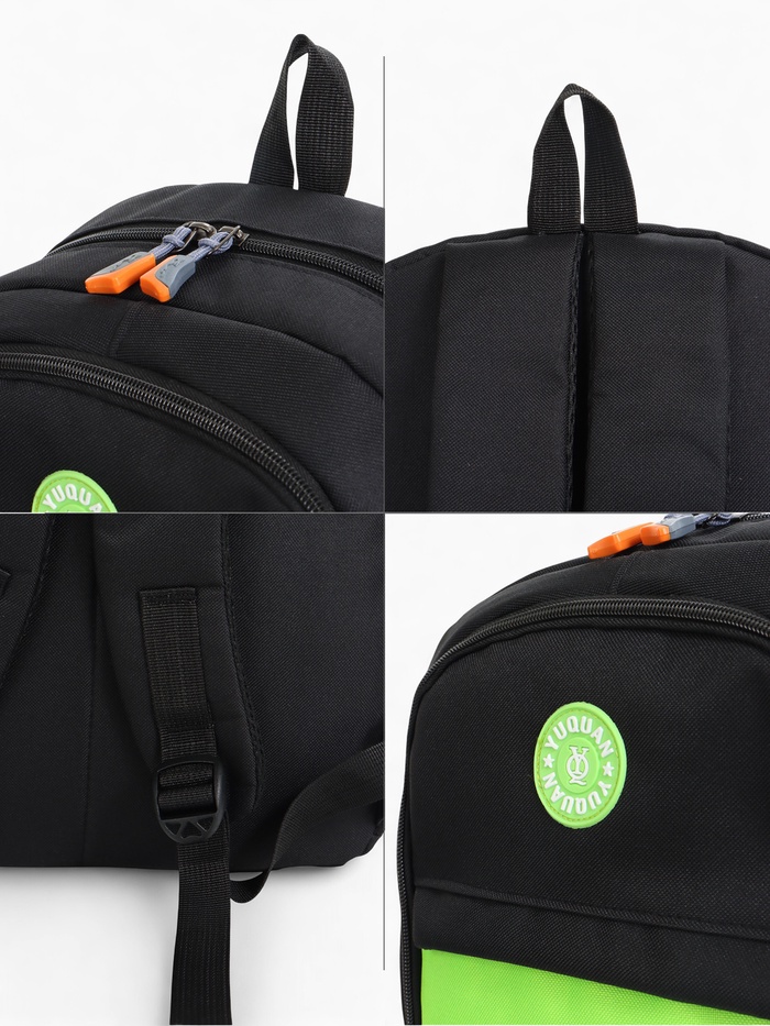 Рюкзак школьный на молнии, с карманом, чёрный/зелёный — Характеристики