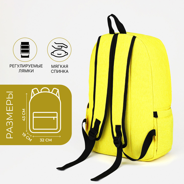 Рюкзак школьный на молнии с карманом, ярко-жёлтый — Характеристики