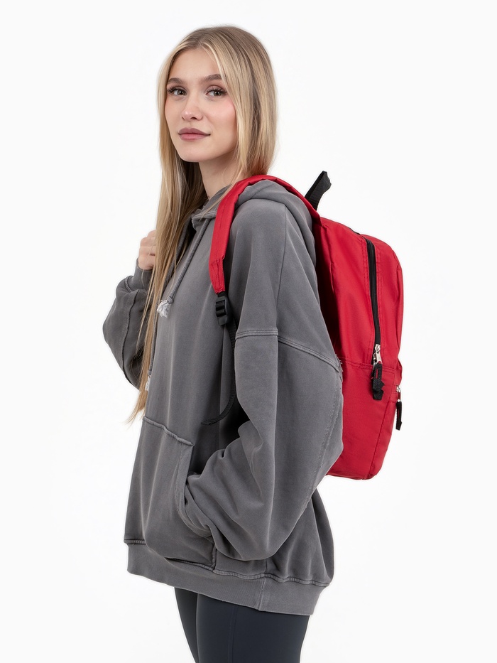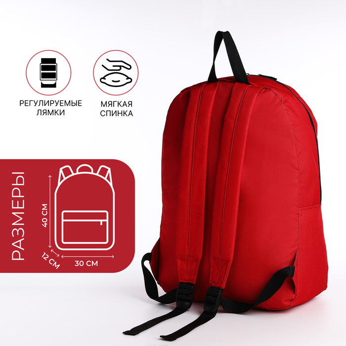 Рюкзак школьный на молнии, с карманом, красный — Характеристики