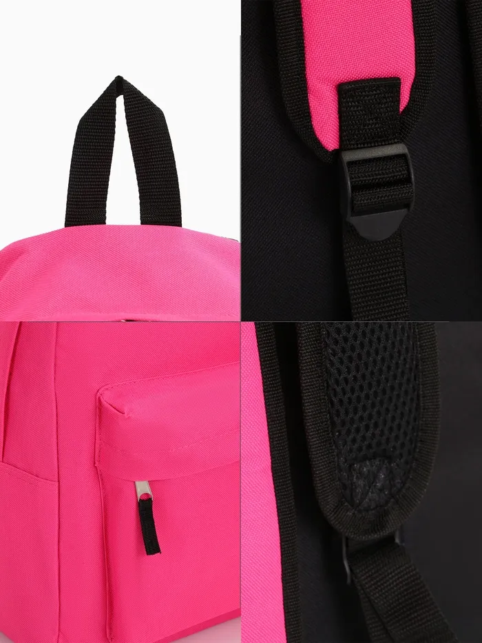 Рюкзак школьный на молнии, с карманом, однотонный, размер 30×14×41 см, фуксия — Характеристики