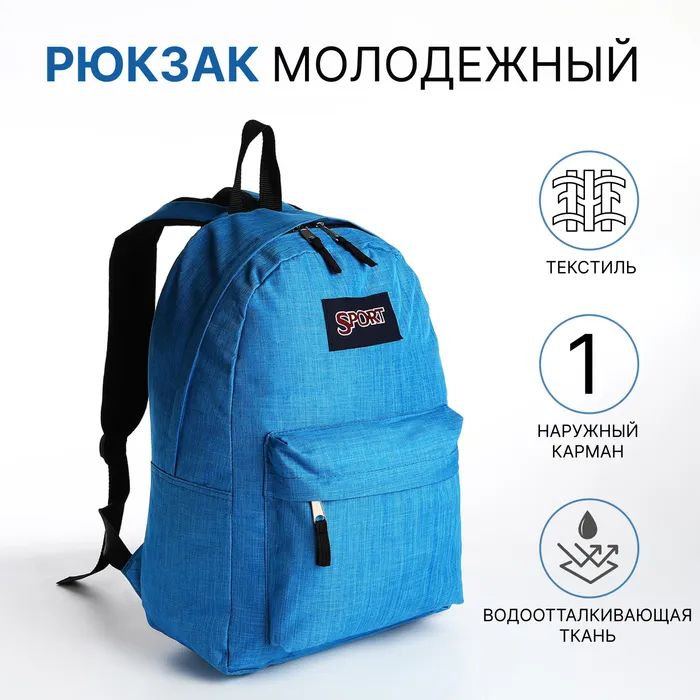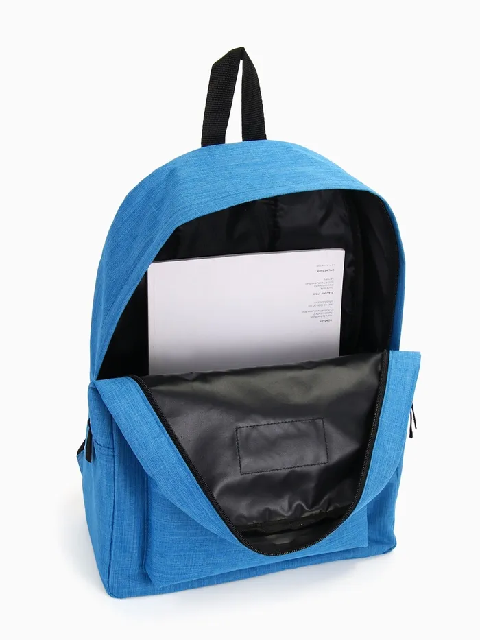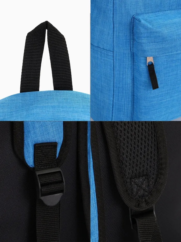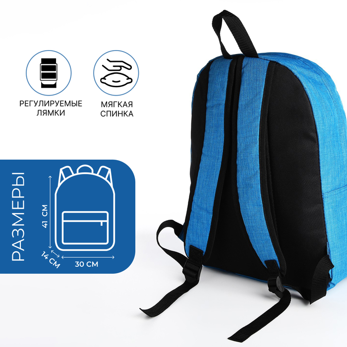 Рюкзак школьный на молнии, с карманом, однотонный, размер 30×14×41 см, голубой — Характеристики