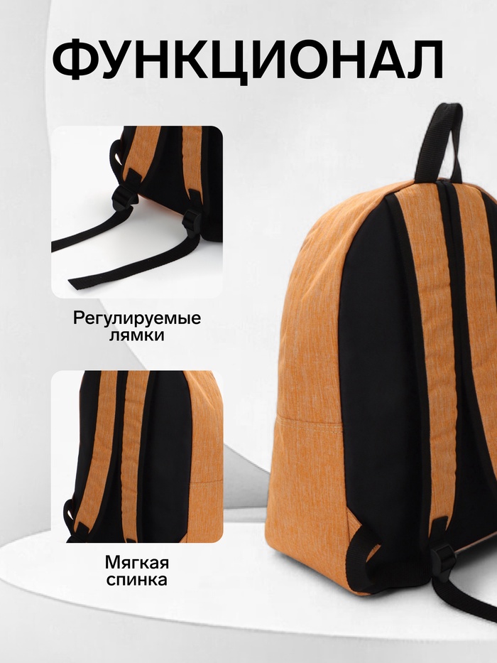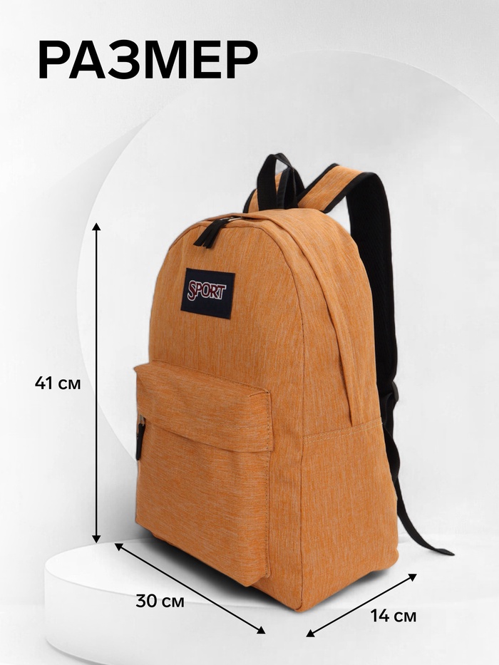 Рюкзак школьный на молнии, с карманом, оранжевый — Характеристики