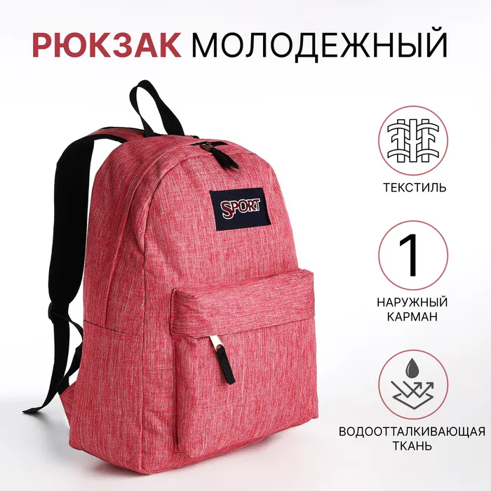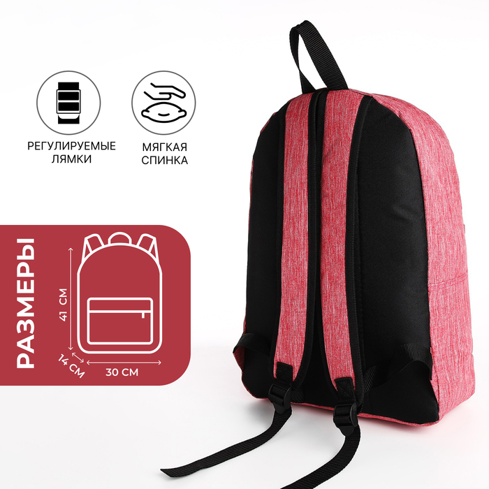 Рюкзак школьный на молнии, с карманом, розово-красный — Характеристики