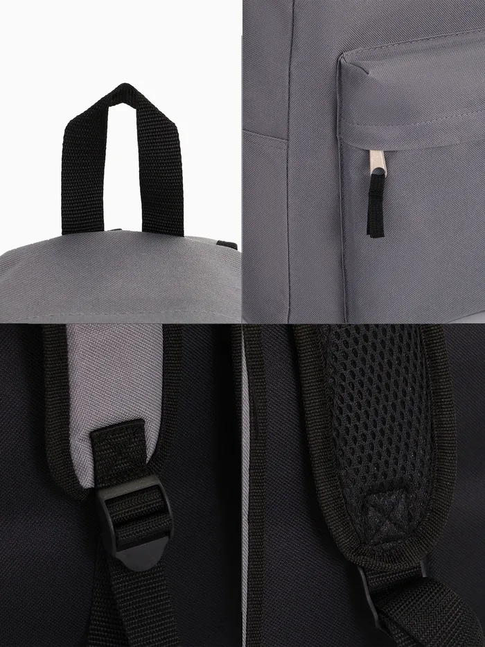 Рюкзак школьный на молнии, с карманом, серый — Характеристики