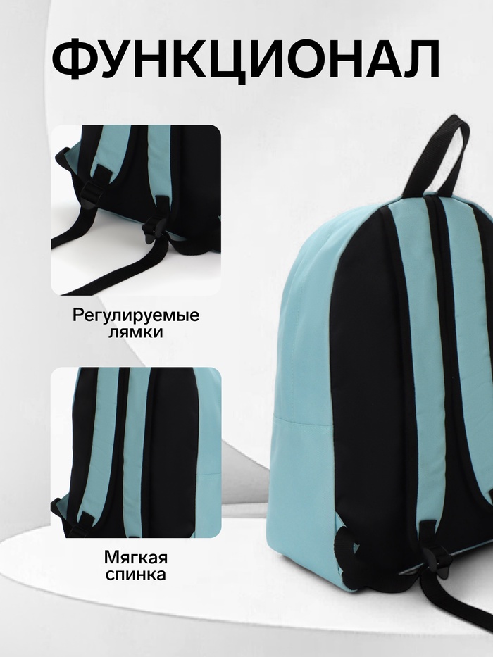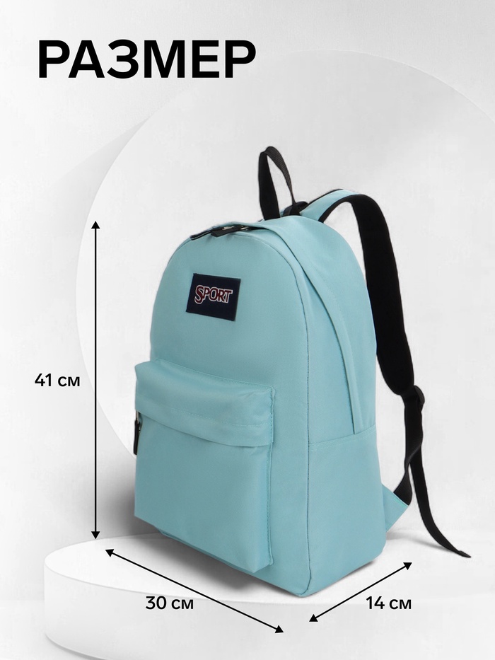 Рюкзак школьный на молнии, с карманом, светло-голубой — Характеристики