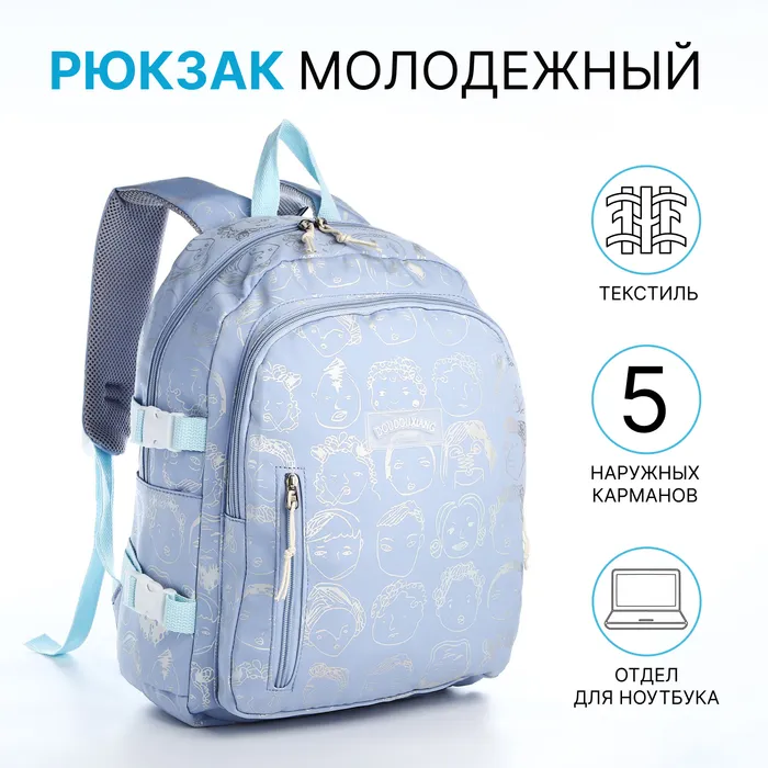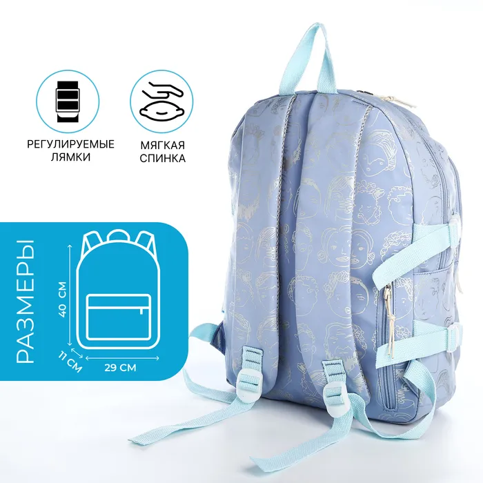 Рюкзак школьный на молнии, с отделами, карманами, размер 29×11×40 см, голубой — Характеристики