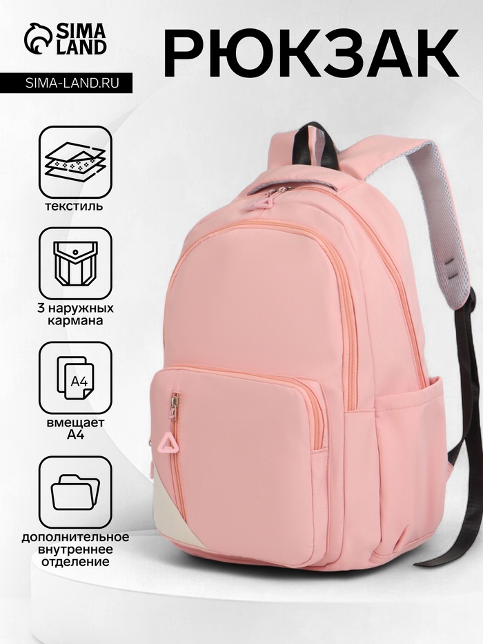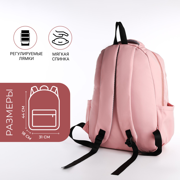 Рюкзак школьный на молнии, с отделами, карманами, размер 31×18×44 см, розовый — Характеристики