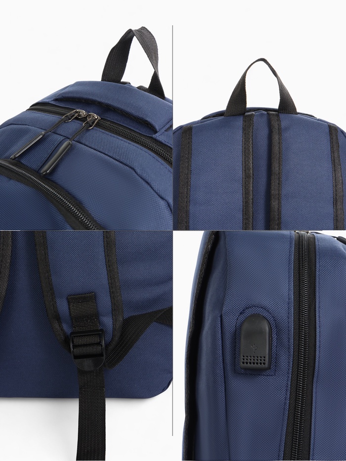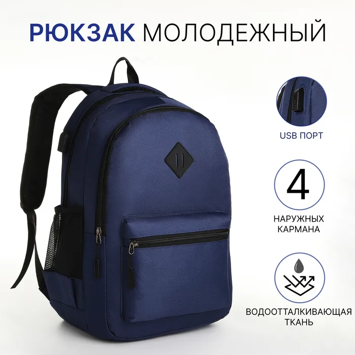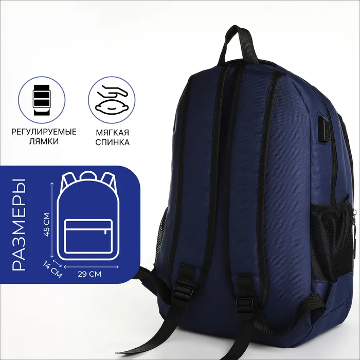 Рюкзак школьный на молнии, с USB, с карманом, синий — Характеристики