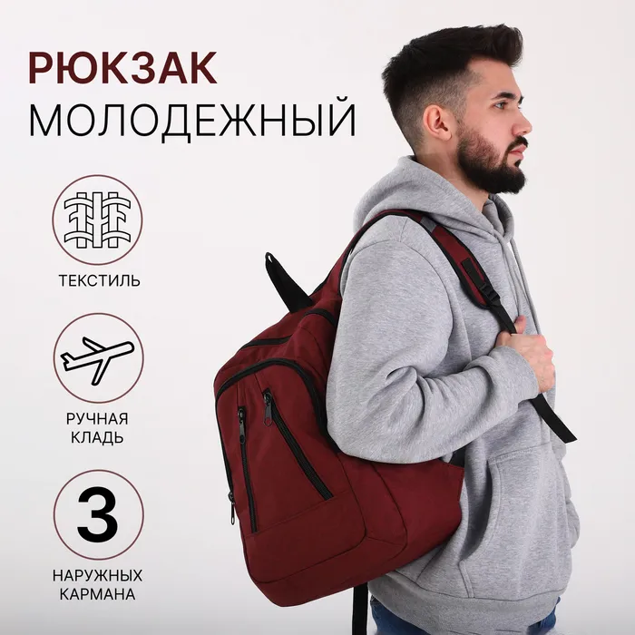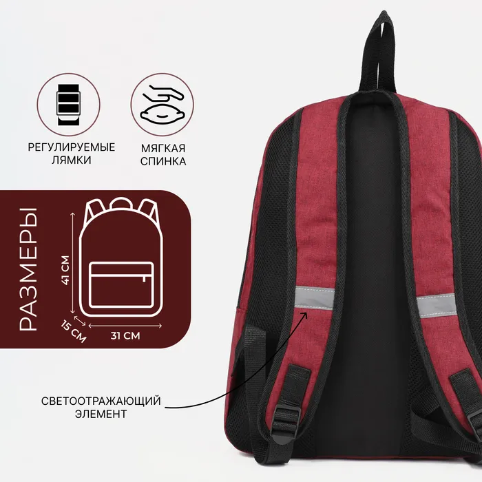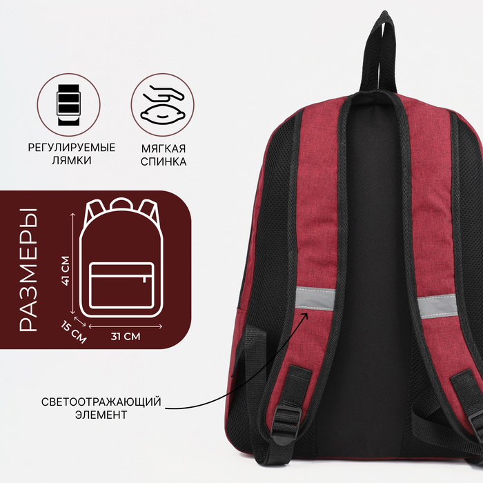Рюкзак школьный на молнии «Сакси», наружный карман, цвет бордовый — Характеристики