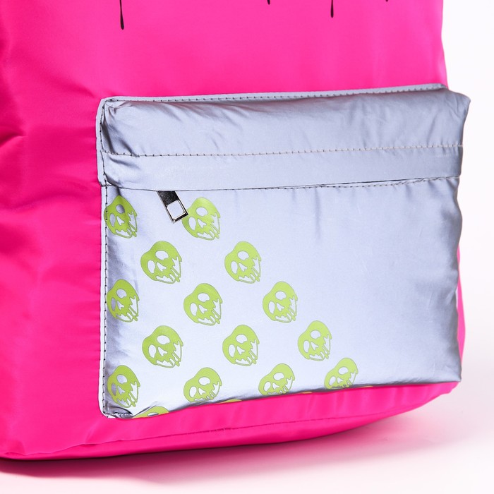 Рюкзак школьный на молнии со светоотражающим карманом, розовый, 30×15×40 см — Характеристики