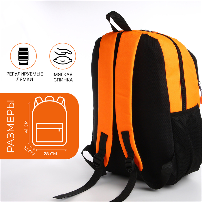 Рюкзак школьный на молнии, со светоотражателем, чёрный/оранжевый — Характеристики