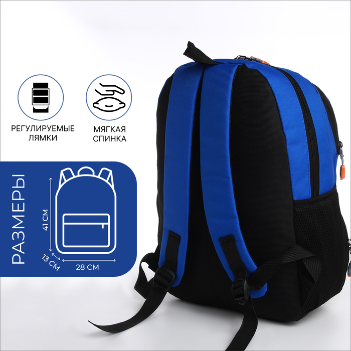 Рюкзак школьный на молнии, со светоотражателем, чёрный/синий — Характеристики