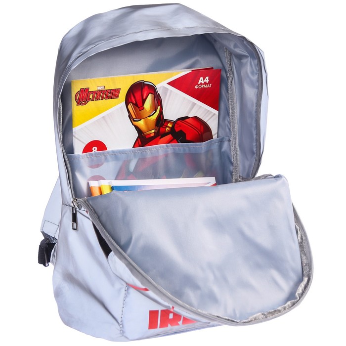 Рюкзак школьный на молнии, светоотражающий, серый, 30 см×15 см×40 см «Мстители» — Характеристики