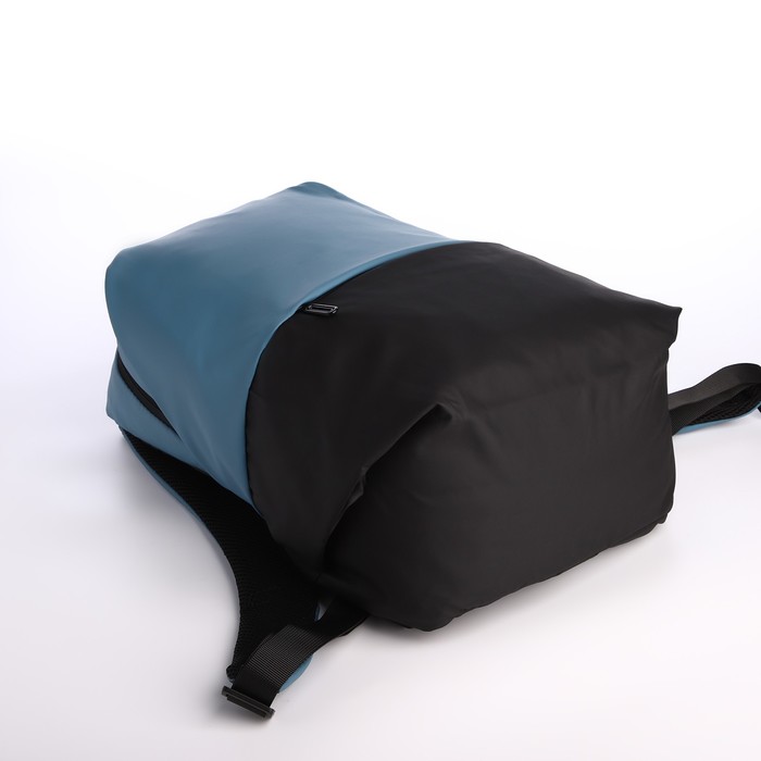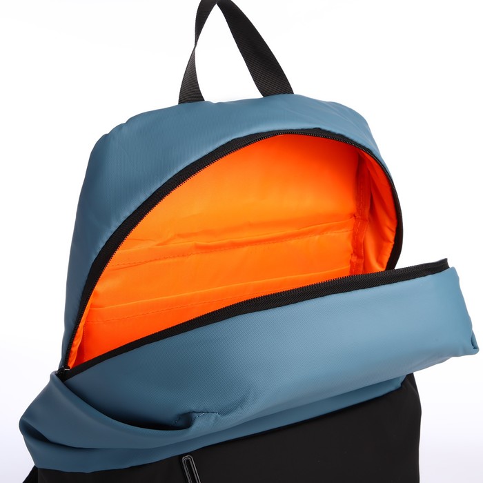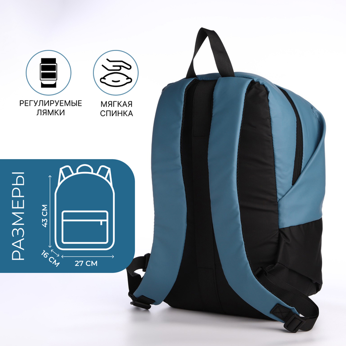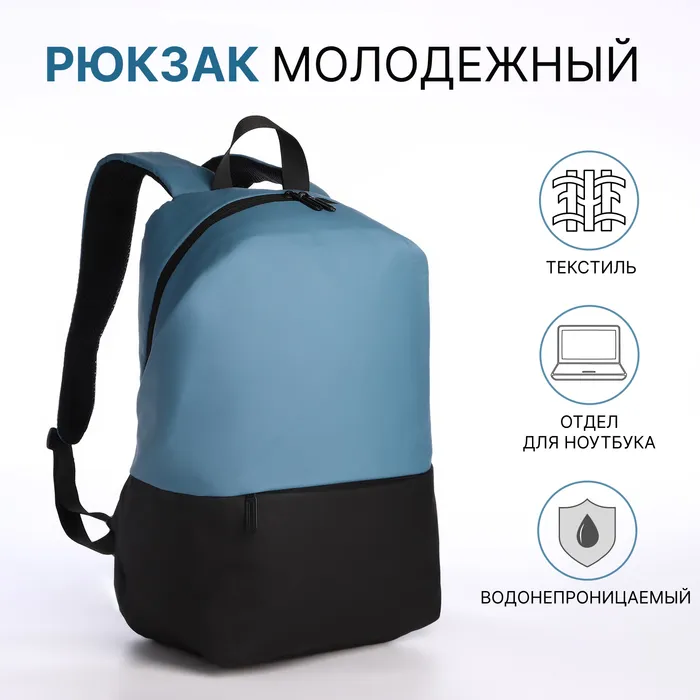 Рюкзак школьный на молнии, водонепроницаемый, с карманом, чёрный/голубой — Характеристики