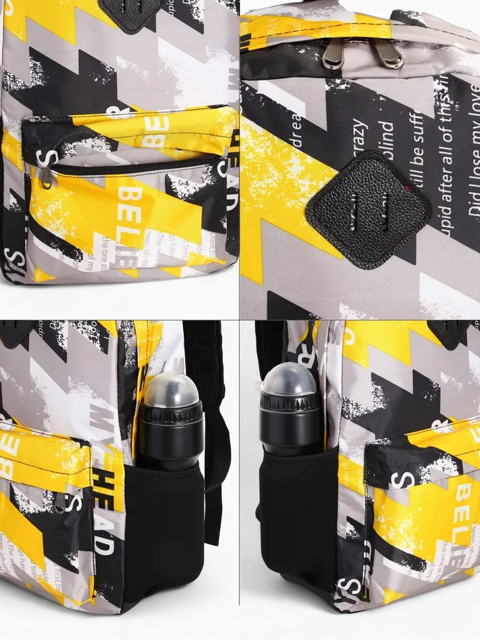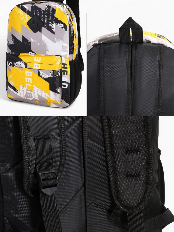 Рюкзак школьный Ombria на молнии, с карманами, с принтом, серый/жёлтый — Характеристики