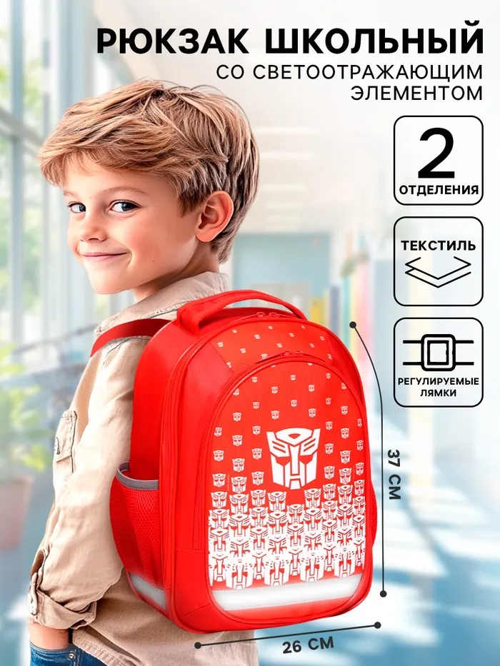 Рюкзак школьный с эргономической спинкой, 37х26х15 см, Трансформеры — Характеристики