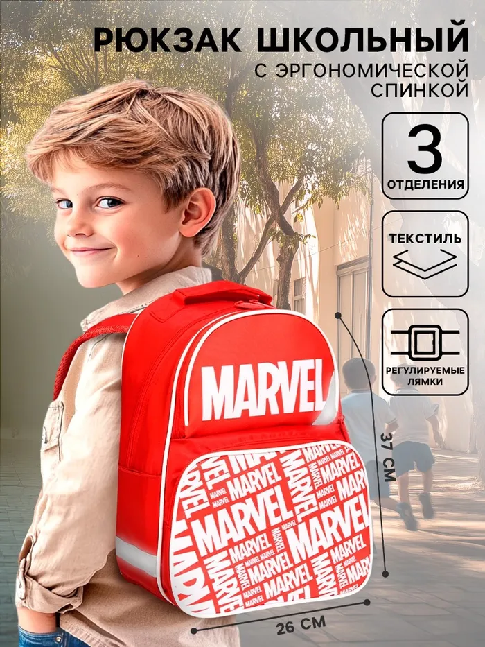 Рюкзак школьный с эргономической спинкой, 37×26×15 см, «Мстители» — Характеристики