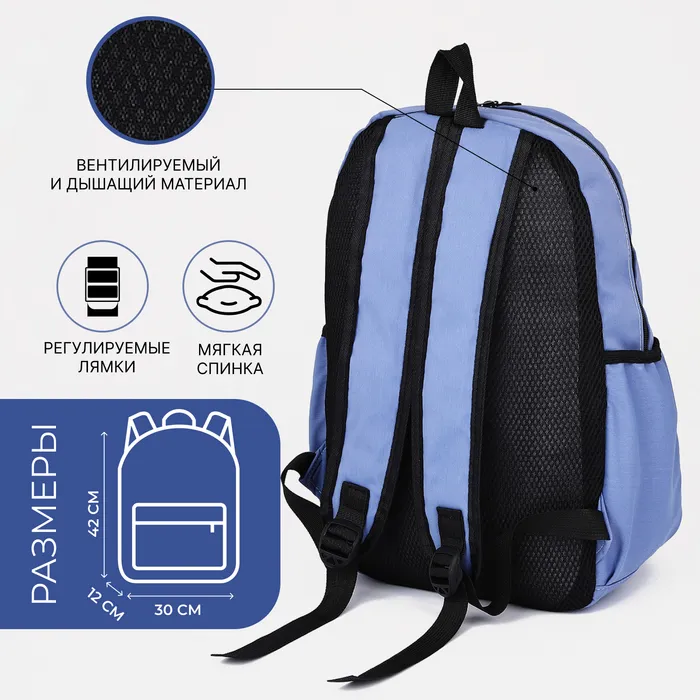 Рюкзак школьный с кошельком на молнии, с карманами, с принтом, сиреневый — Характеристики