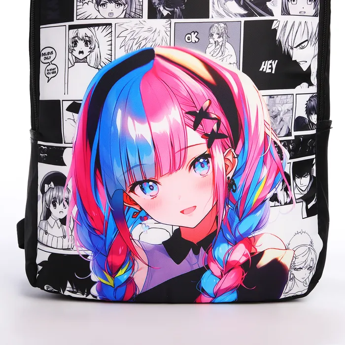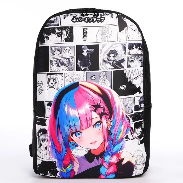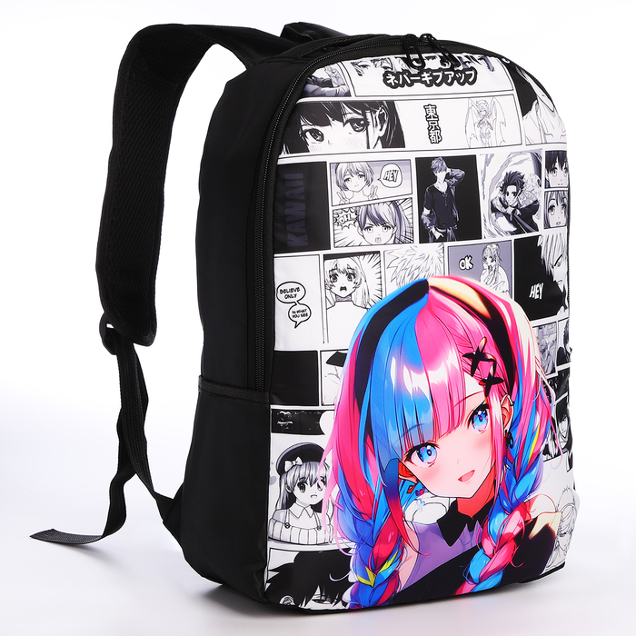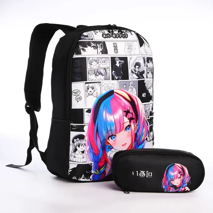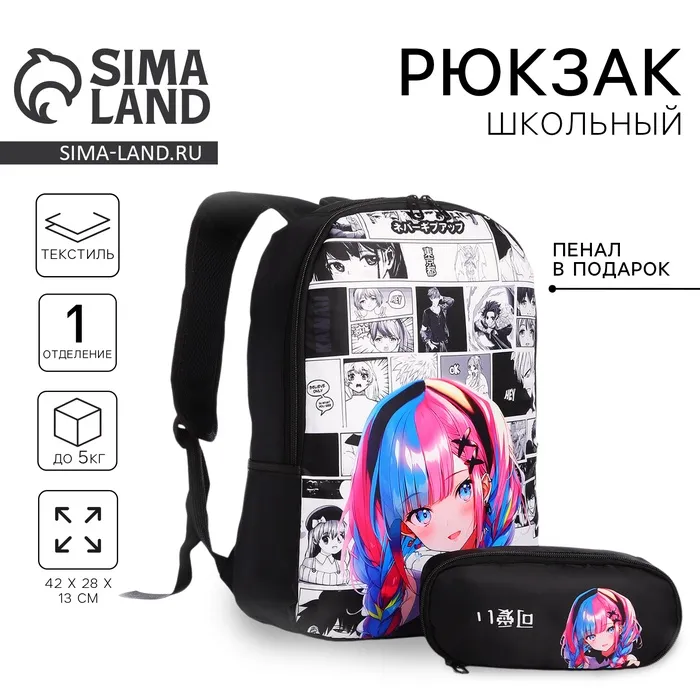 Рюкзак школьный с пеналом «Аниме девочка», 42×28×13 см, чёрный — Характеристики