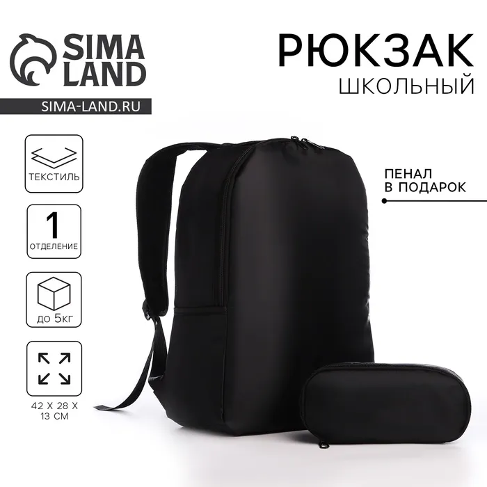 Рюкзак школьный с пеналом «Классика», 42×28×13 см, чёрный — Характеристики