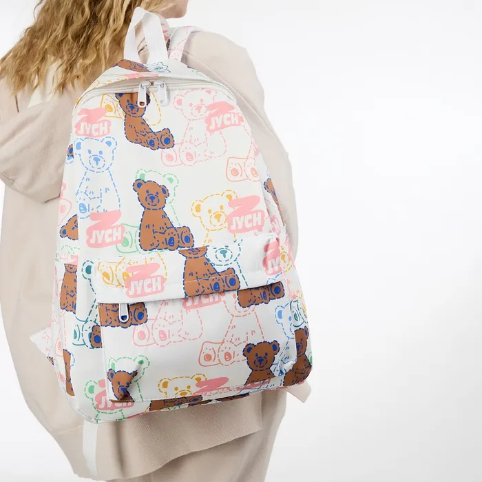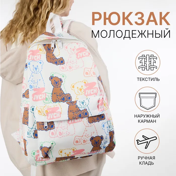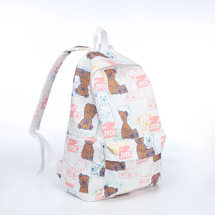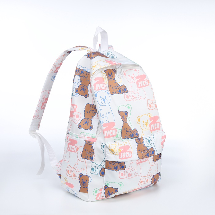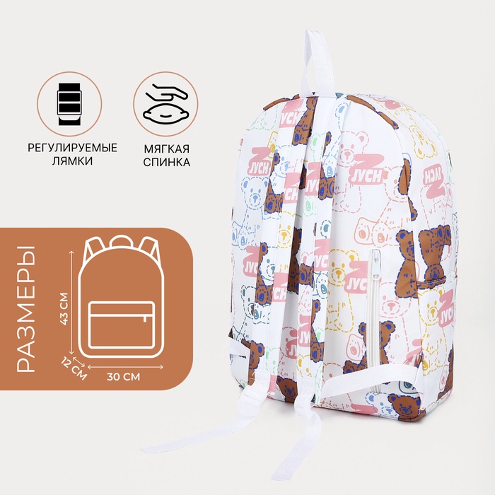 Рюкзак школьный Sweet Bears на молнии, с карманами, с принтом «Медведи», белый/розовый — Характеристики